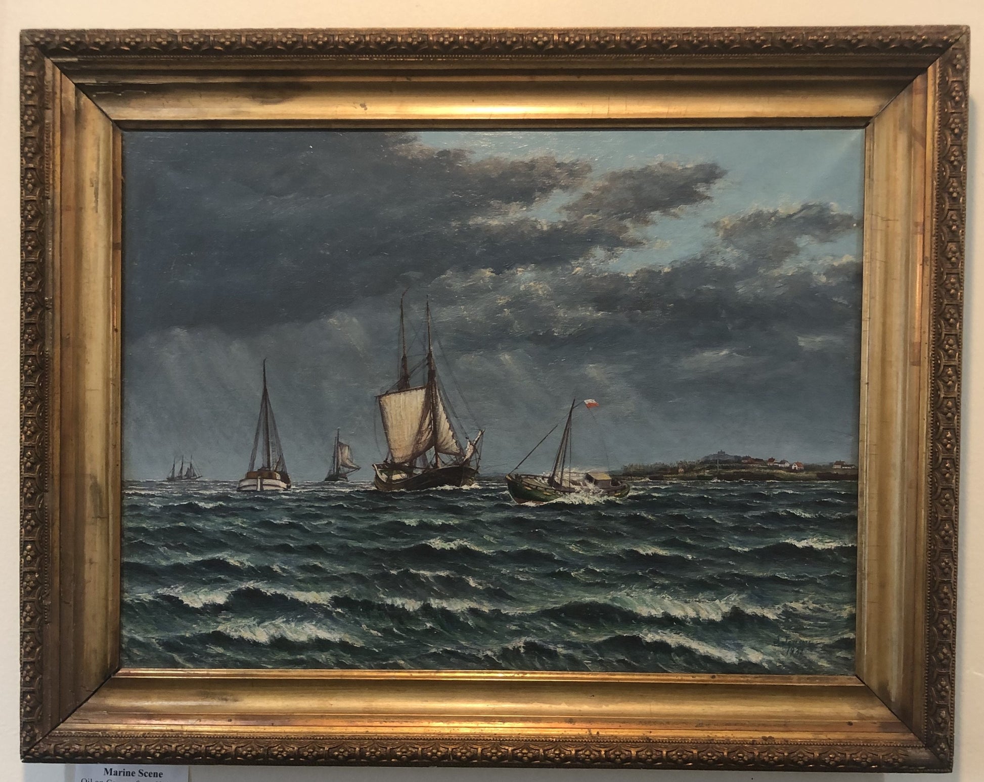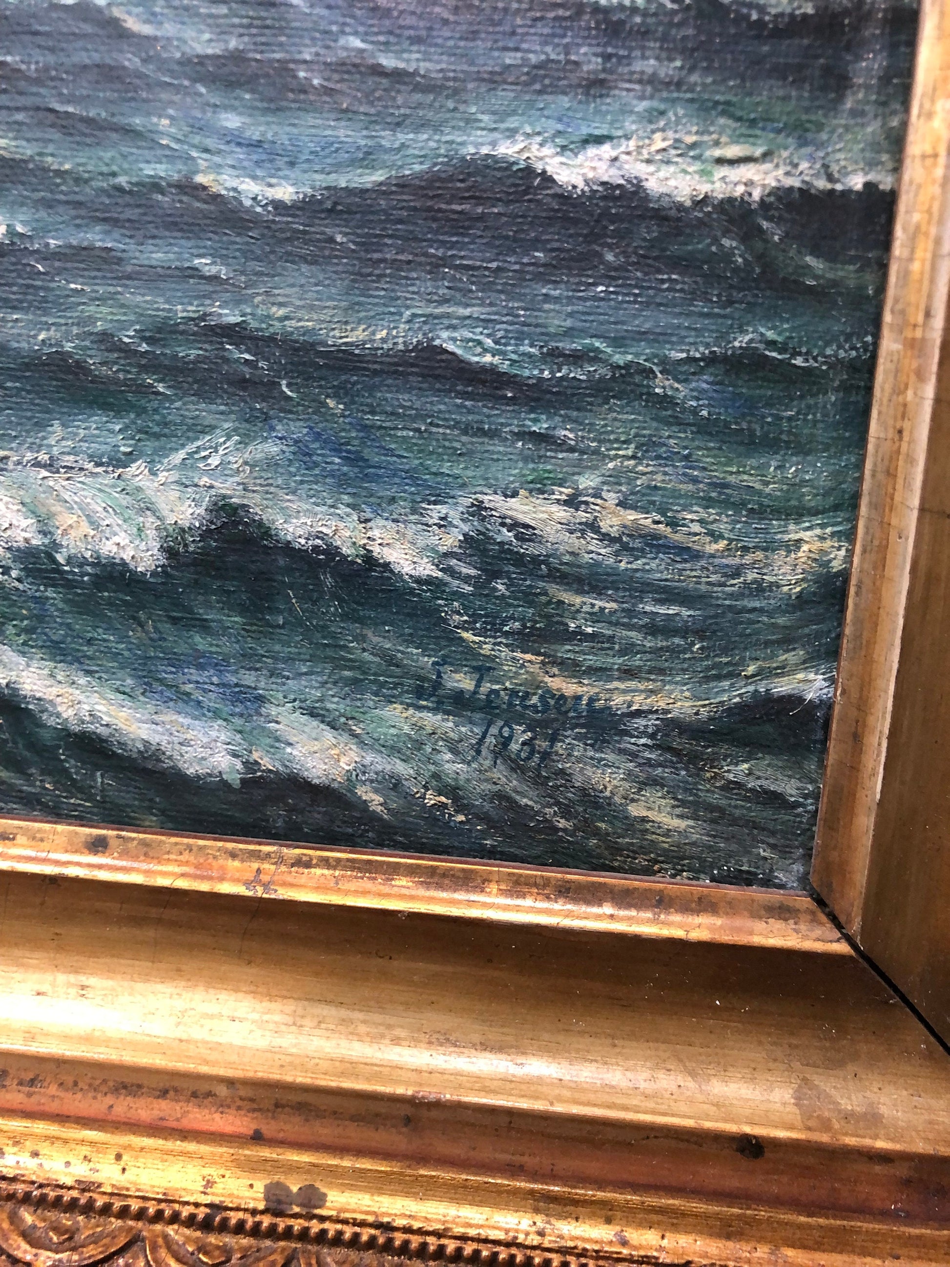Antique Dutch Netherlands Oil on Canvas Marine Boats Signed J. Jensen c1931. Signed and dated on the bottom right. A little bit of wear and a small part missing on the bottom right on the frame (see photos). It's in good condition for its age.