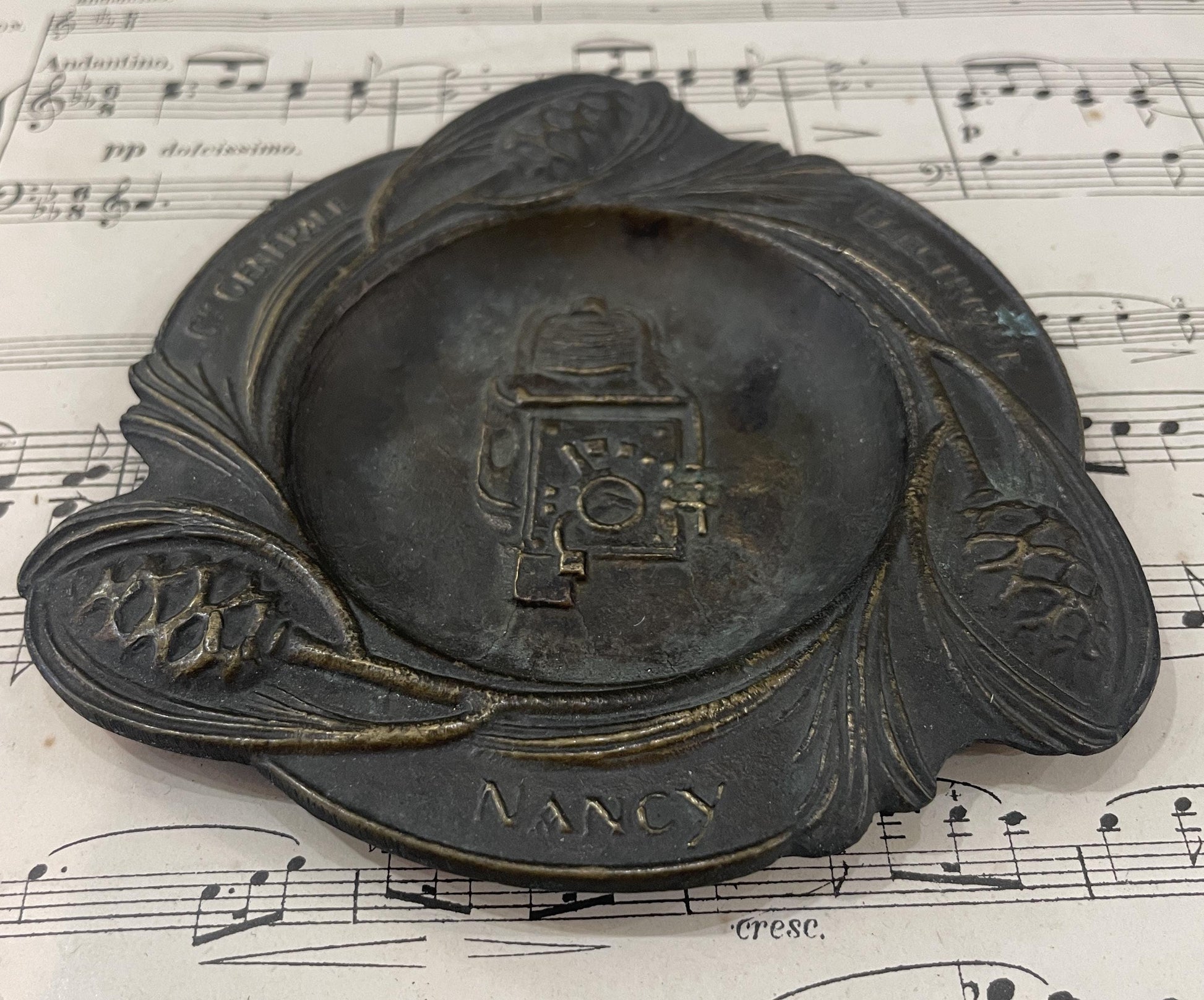 Antique French Art Nouveau Bronze Tray Cie Generale Electrique Nancy c1920. The "Compagnie Generale Electrique" of Nancy, founded in 1898 on Oberlin Street, was a major industrial site specializing in the production of electric motors and equipment. A little bit of wear but overall in good condition.