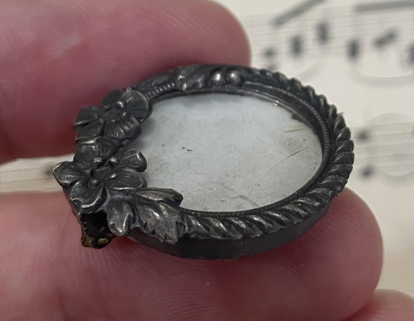 Antique French Art Nouveau Brooch Photo Holder Flowers c1920