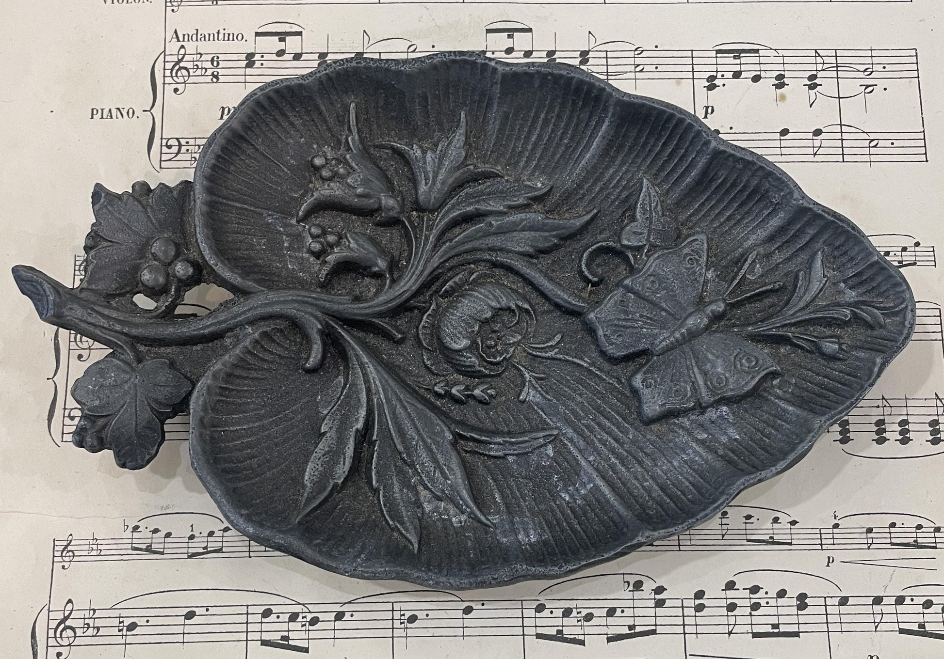 Antique French Art Nouveau Cast Iron Tray Butterfly c1920. It's in good condition.