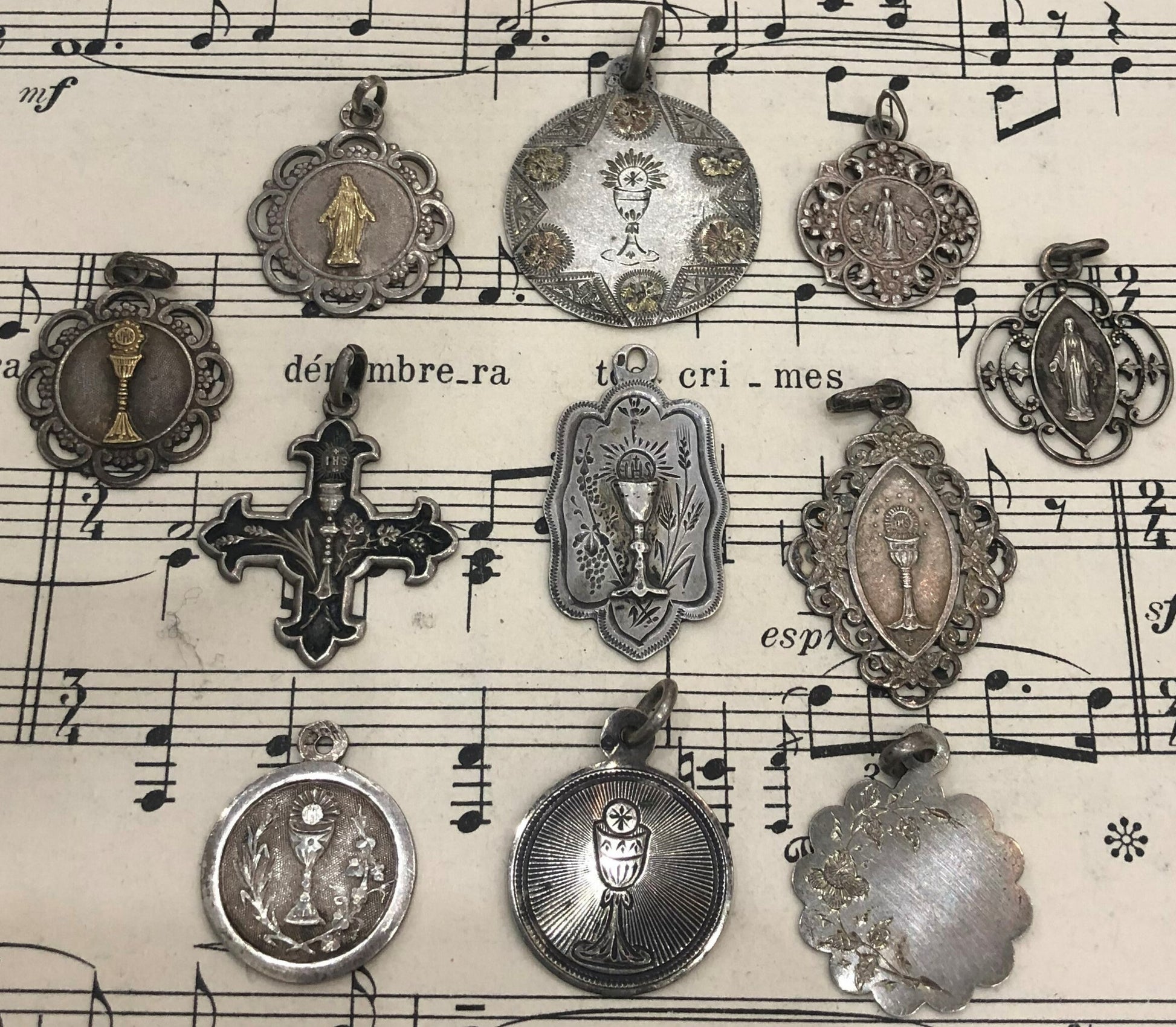 The last photo shows a few first communion sterling silver medals that we have for sale, don't forget to take a look at them.