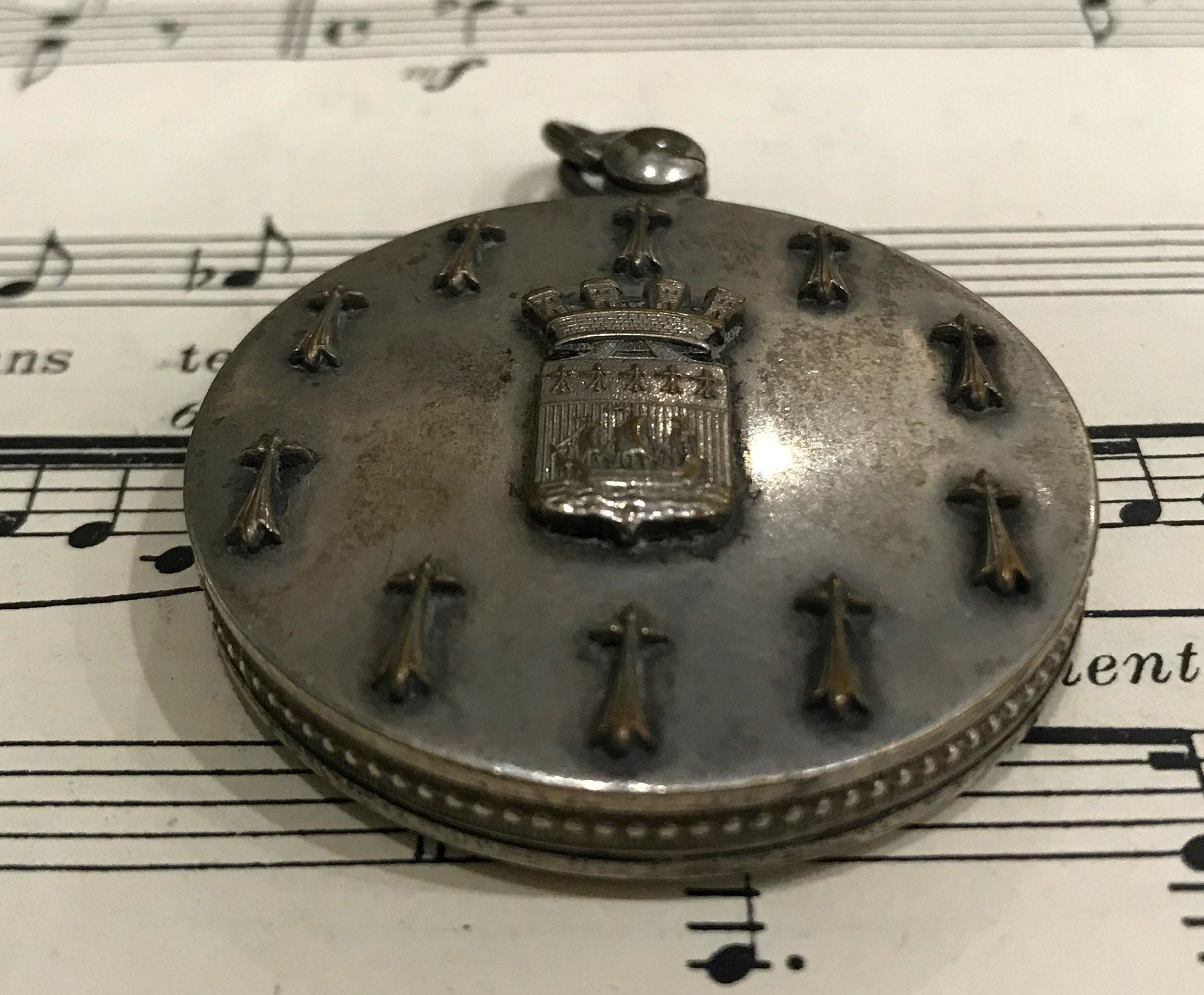 Antique French Art Nouveau Sliding Mirror Pendant Alsatian Cross Shield with Boat c1900. A little bit of wear but overall in good condition for its age.