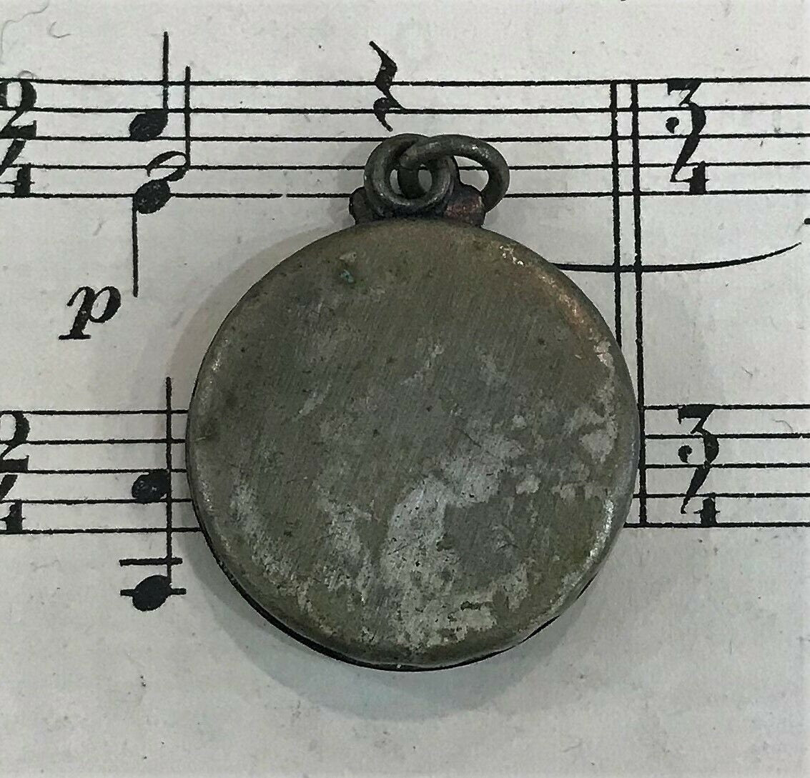 Antique French Art Nouveau Sliding Pendant Photo Holder Cherries c1920. It slides open to show a compartment where a small photo is present. It's in good condition for its age.