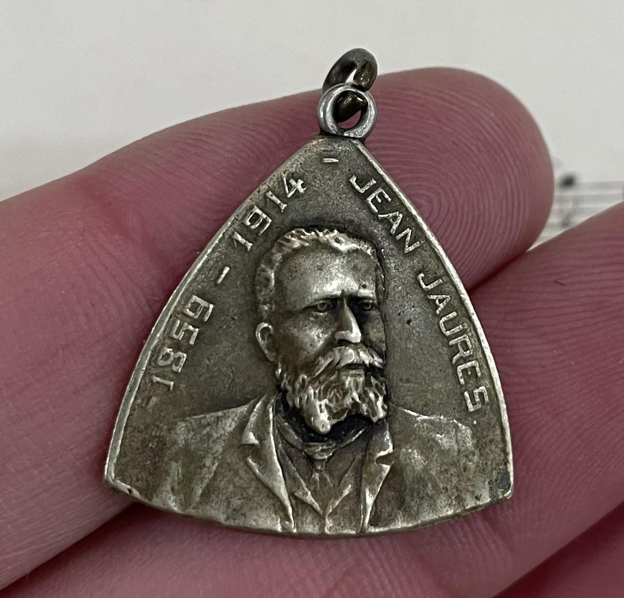 Antique French Bronze Art Nouveau Pendant Jean Jaures c1920. It's silver plated. It's in good condition for its age.
