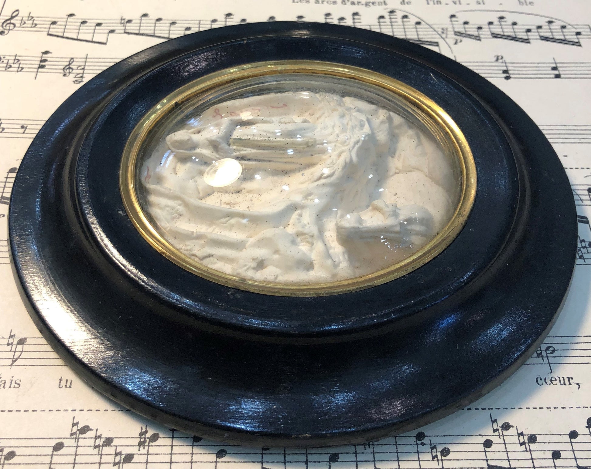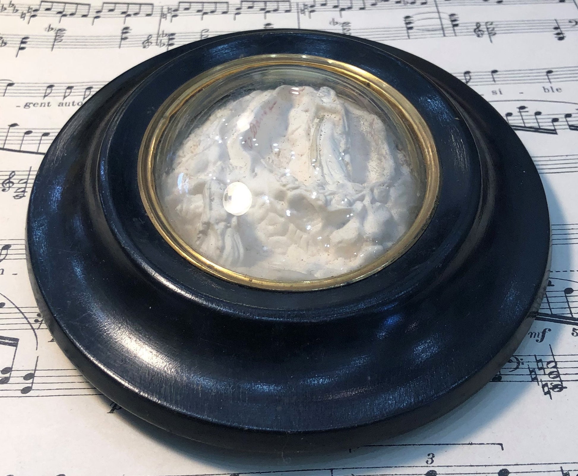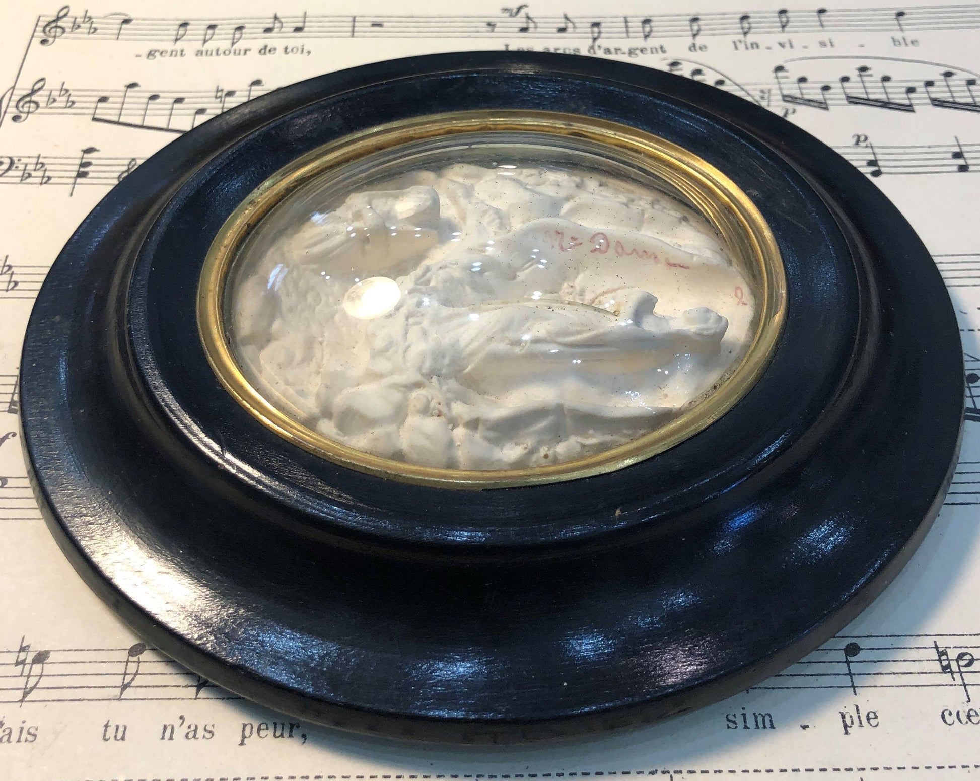 Antique French Carved Plaster Apparition of Lourdes Domed Glass c1900