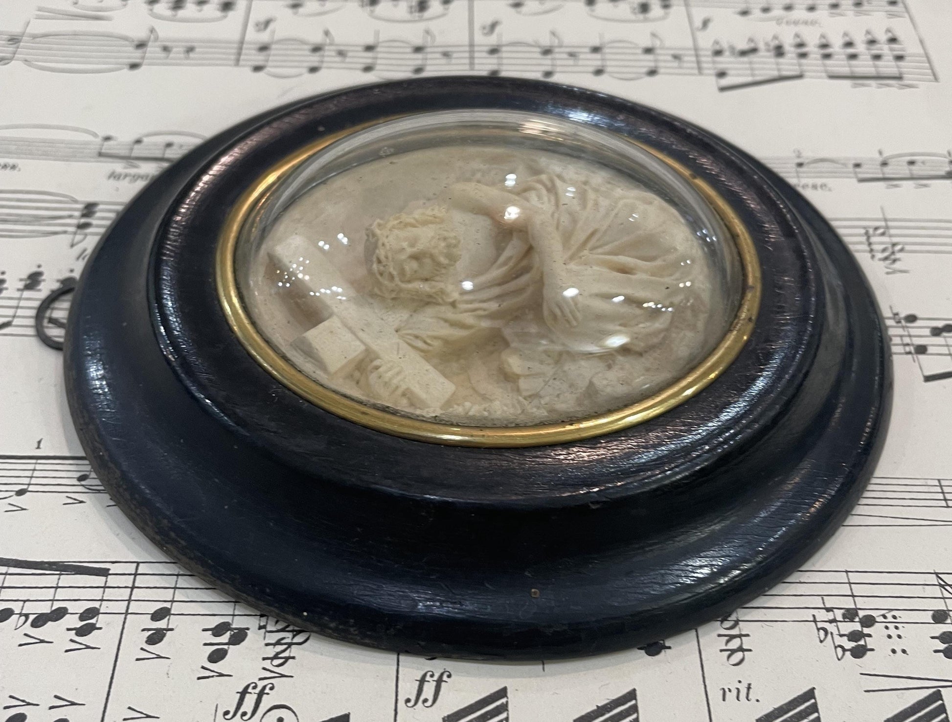 Antique French Carved Plaster Jesus Carrying Cross Domed Glass c1900