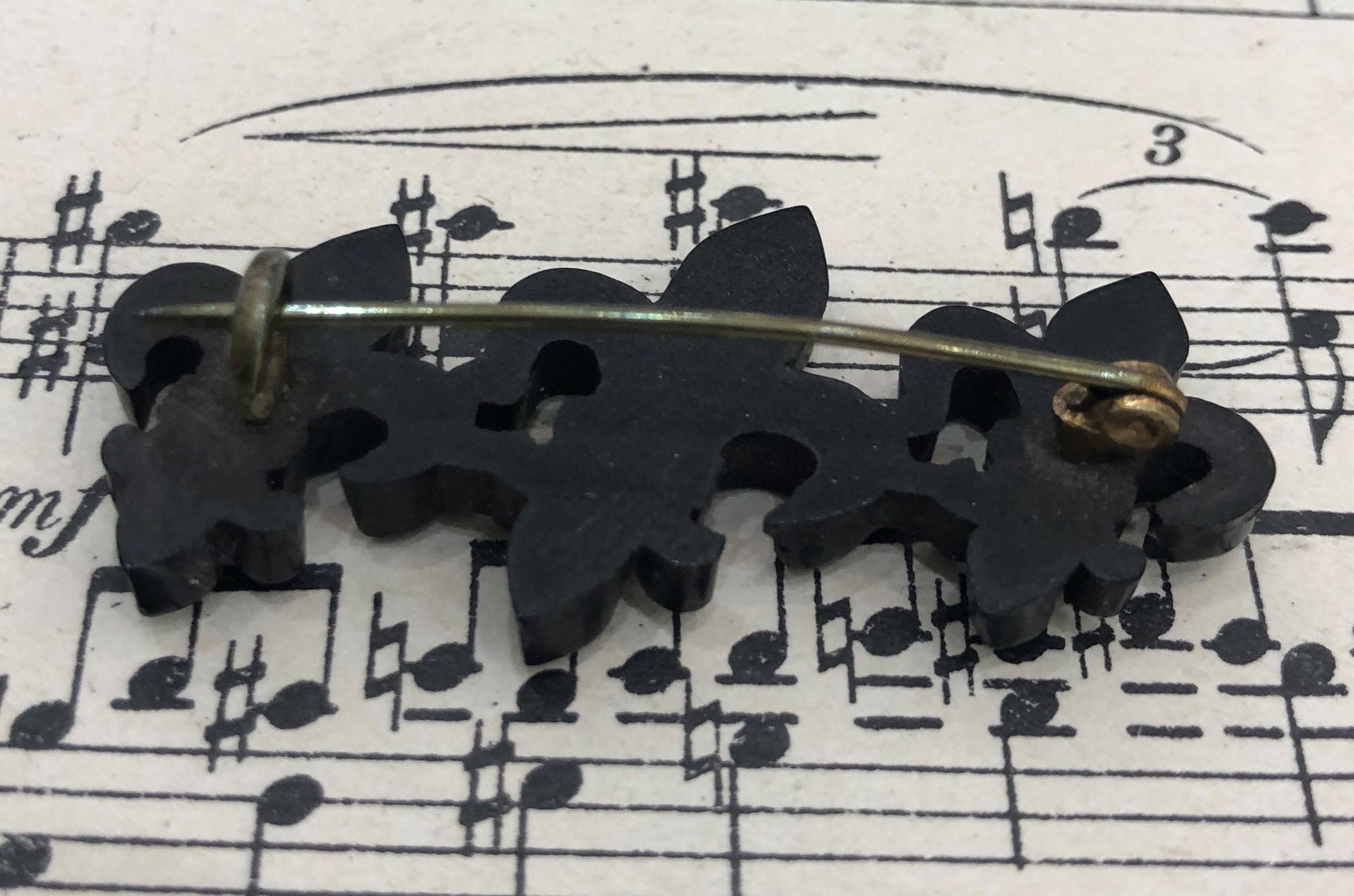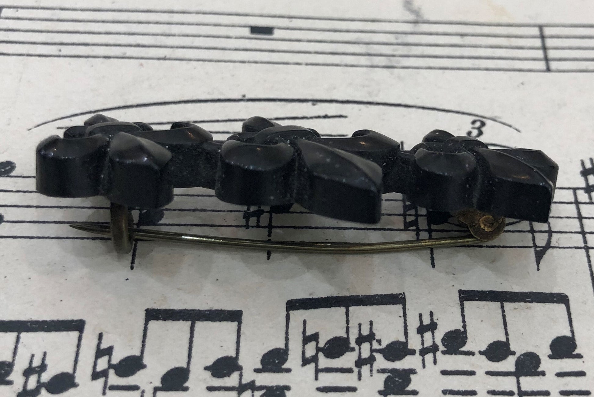 Antique French Fleur de Lys Gutta Percha Mourning Brooch c1900