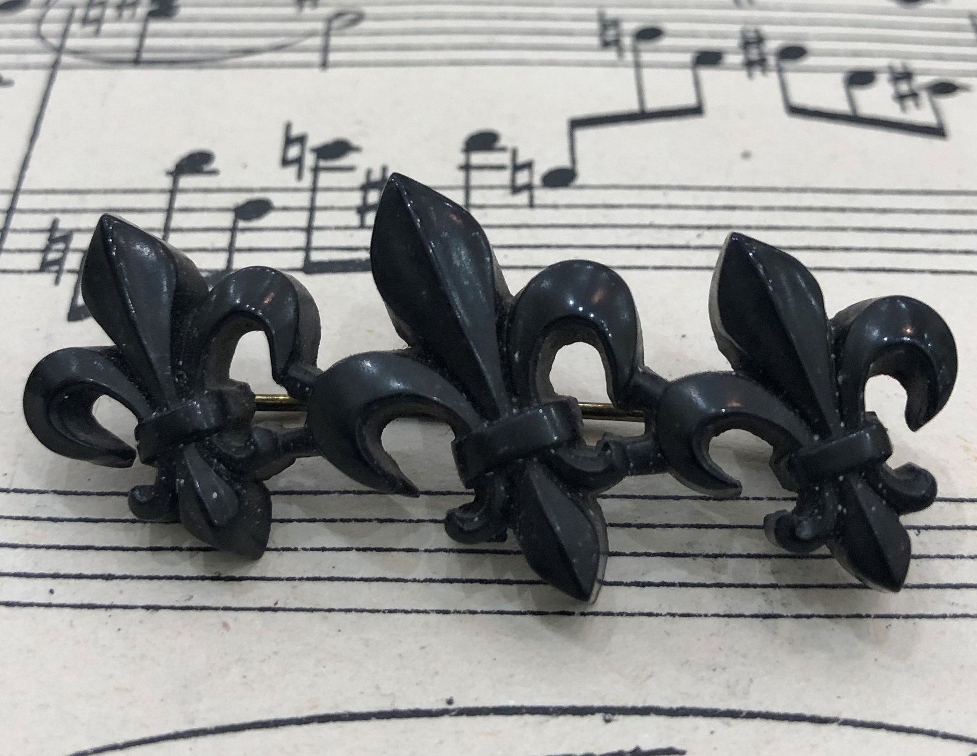 Antique French Fleur de Lys Gutta Percha Mourning Brooch c1900. It's in good condition.