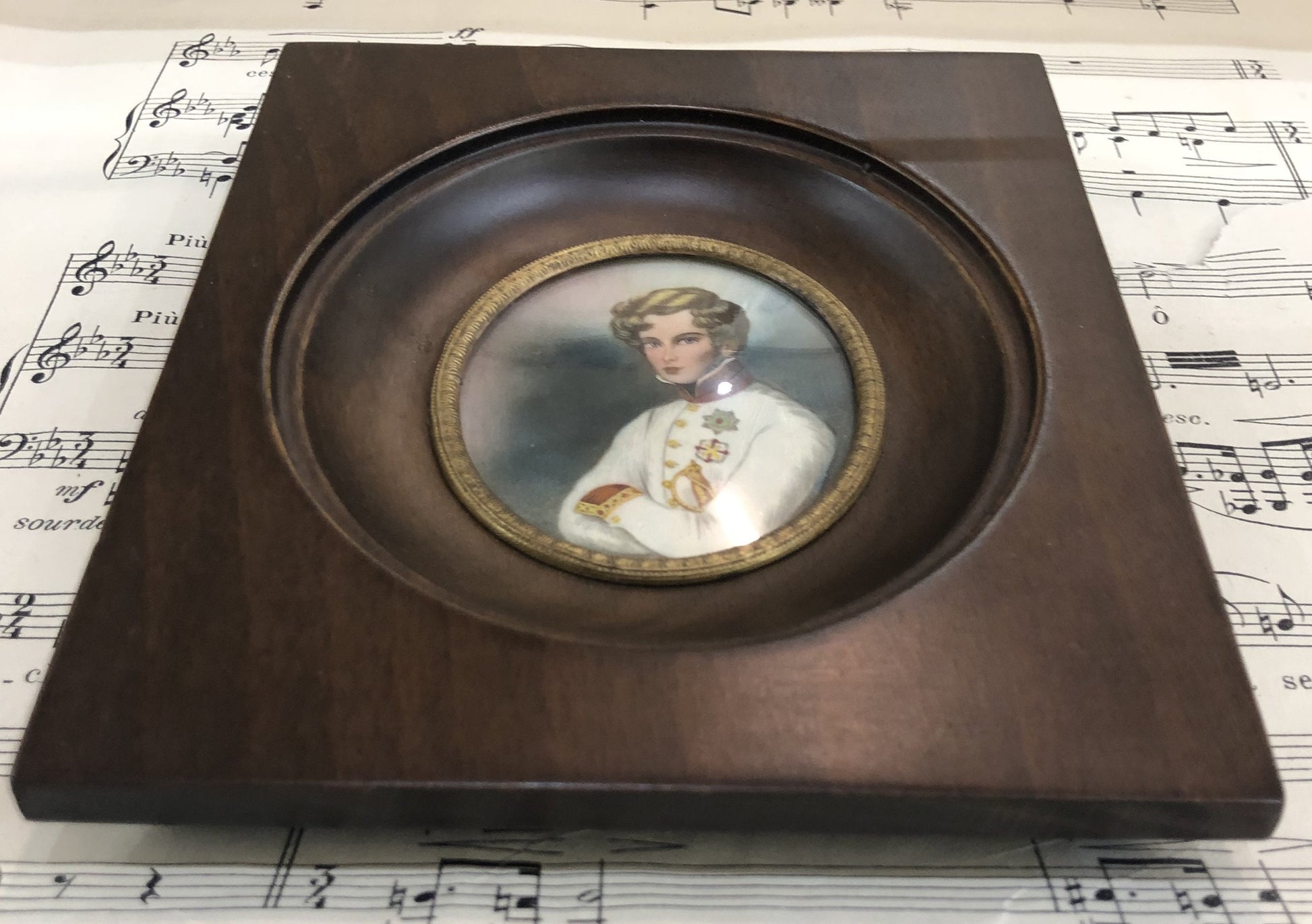Antique French Miniature Portrait Napoleon II wooden frame Domed Glass c1900