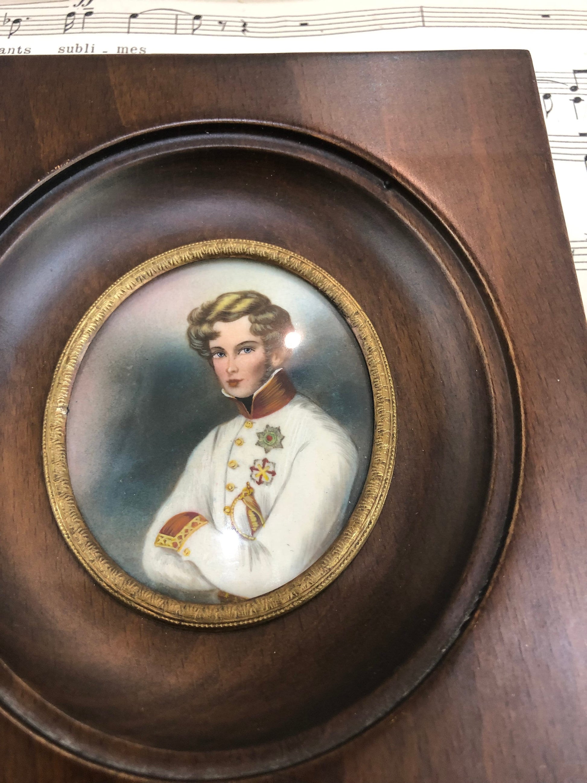 Antique French Miniature Portrait Napoleon II wooden frame Domed Glass c1900. The frame is made of wood and the glass is slightly domed. It's in good condition.