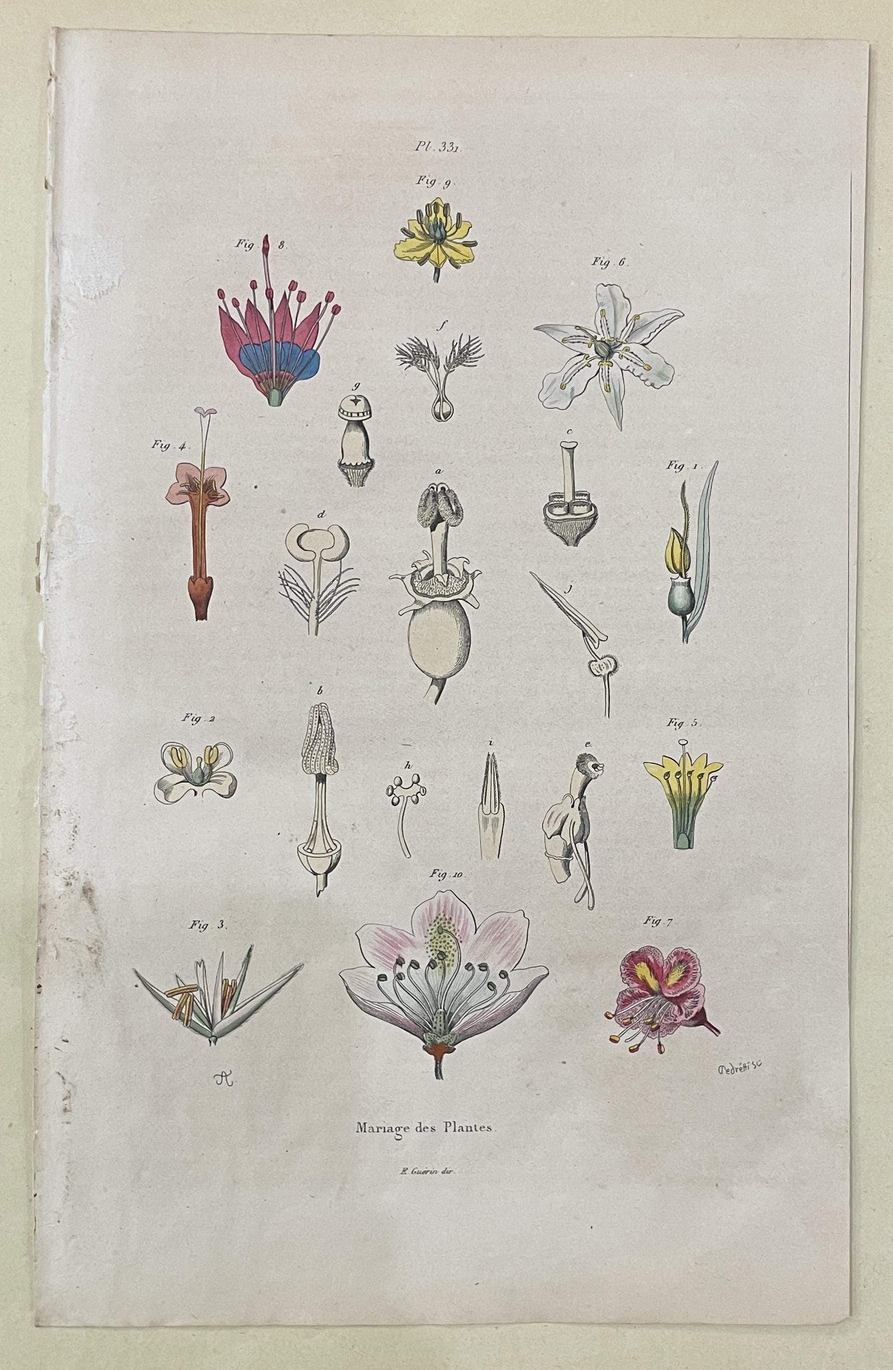 Antique French Natural History Engravings from Guerin Dictionary Plants c1836. This is an original page from Guerin's "Dictionnaire pittoresque d'histoire naturelle et des phénomènes de la nature" from 1836. This is an engravings, meaning a copper plate was used to make all the black line and it was hand watercolored.