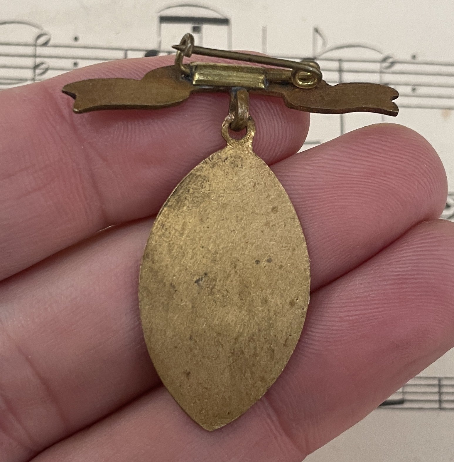 Antique French Our Lady of La Salette Religious Enameled Medal Brooch c1920