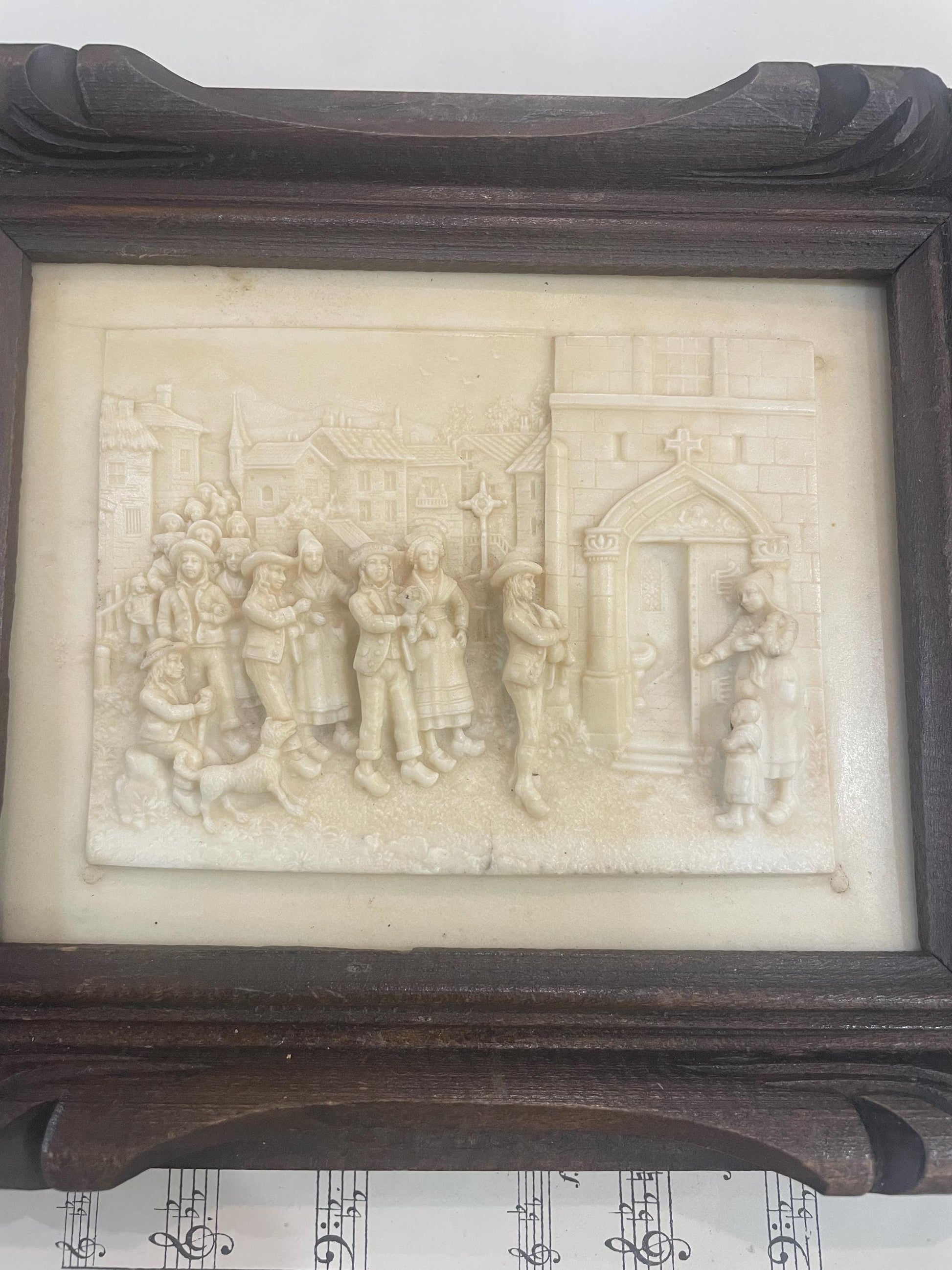 Antique French Petrifying Well Peasant Scene Plaque Framed c1920. It's in good condition.