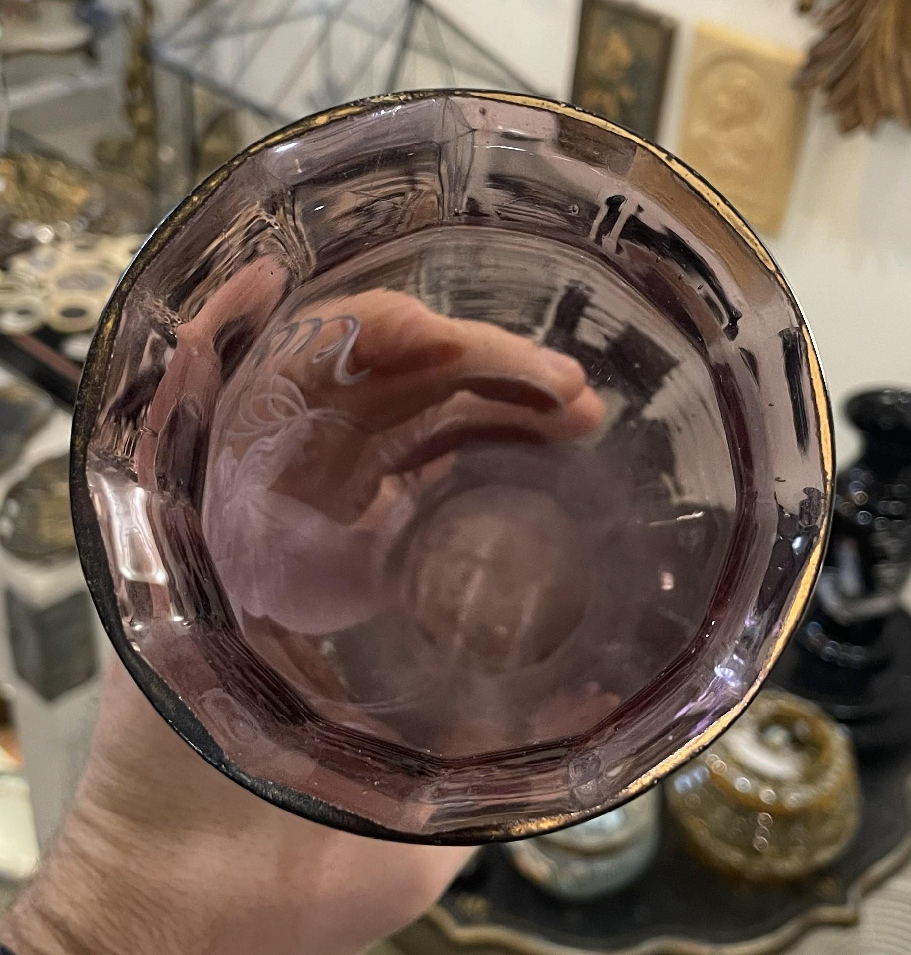 Antique French Purple Glass Hand Painted Enameled Vase Mary Gregory c1900
