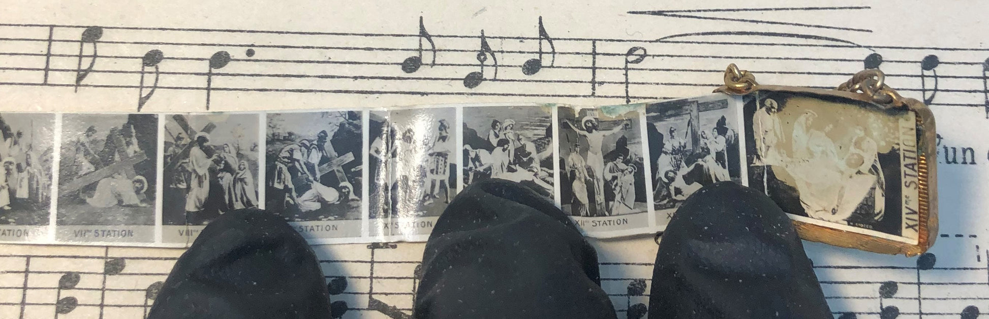 Antique French Souvenir Photos Pendant / Purse Jesus Sacred Heart c.1910. It was made in France and it contains 8 original antique photographs of the station of the cross. It's in good condition.