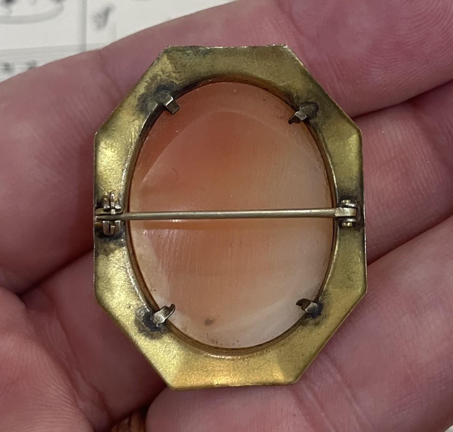 Antique Italian Carved Shell Cameo Roman Woman c1880. The setting is gold plated. A little bit of wear but overall in good condition.