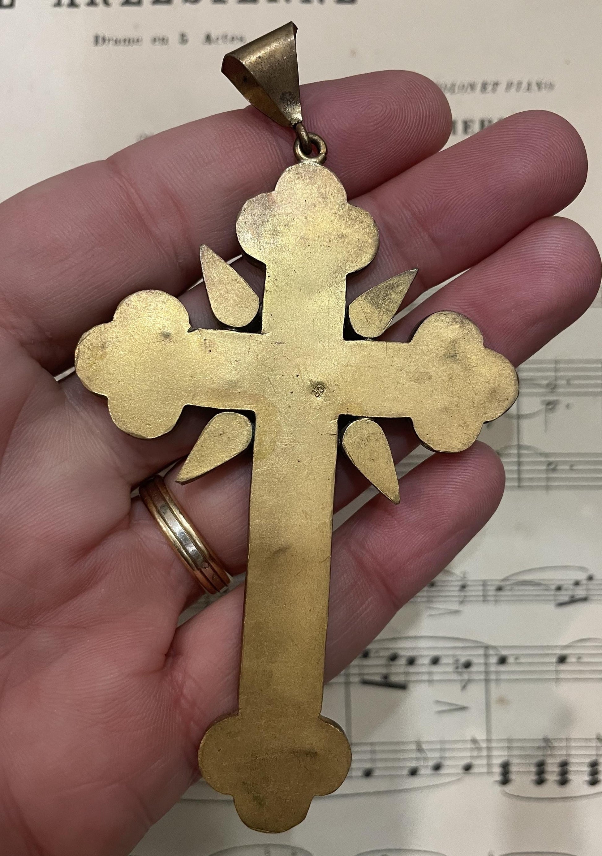 Antique Italian Micro Mosaic Micromosaic Cross Crucifix Chalice c1900. It's in good condition.