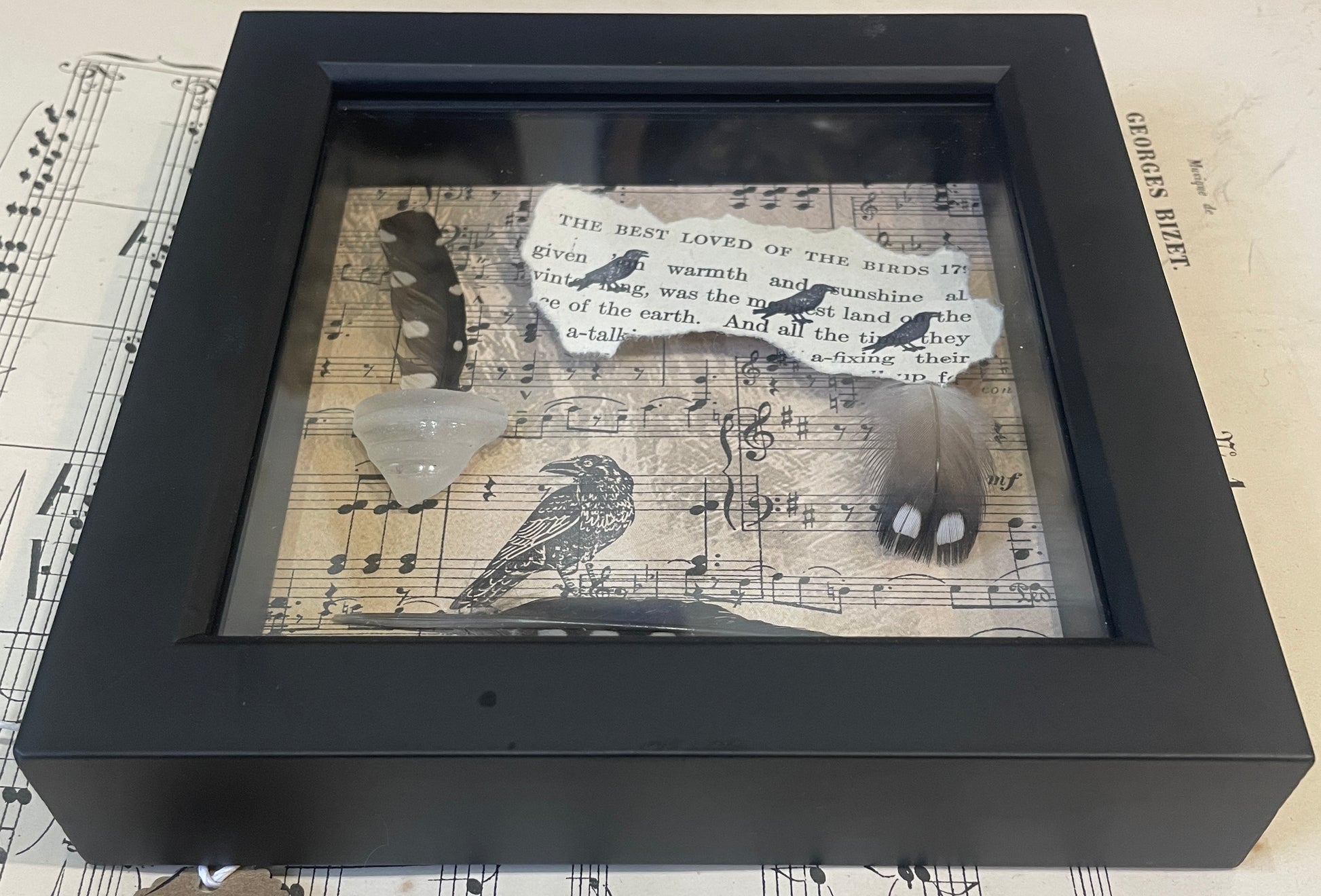 Carol Austin is a WA artist who has a knack for finding stones on her walks that demand to be transformed into one of her Rock Flock. She creates one of a kind shadowbox art using found natural elements to create small vignettes of birds and more. She also makes cards and ornaments.