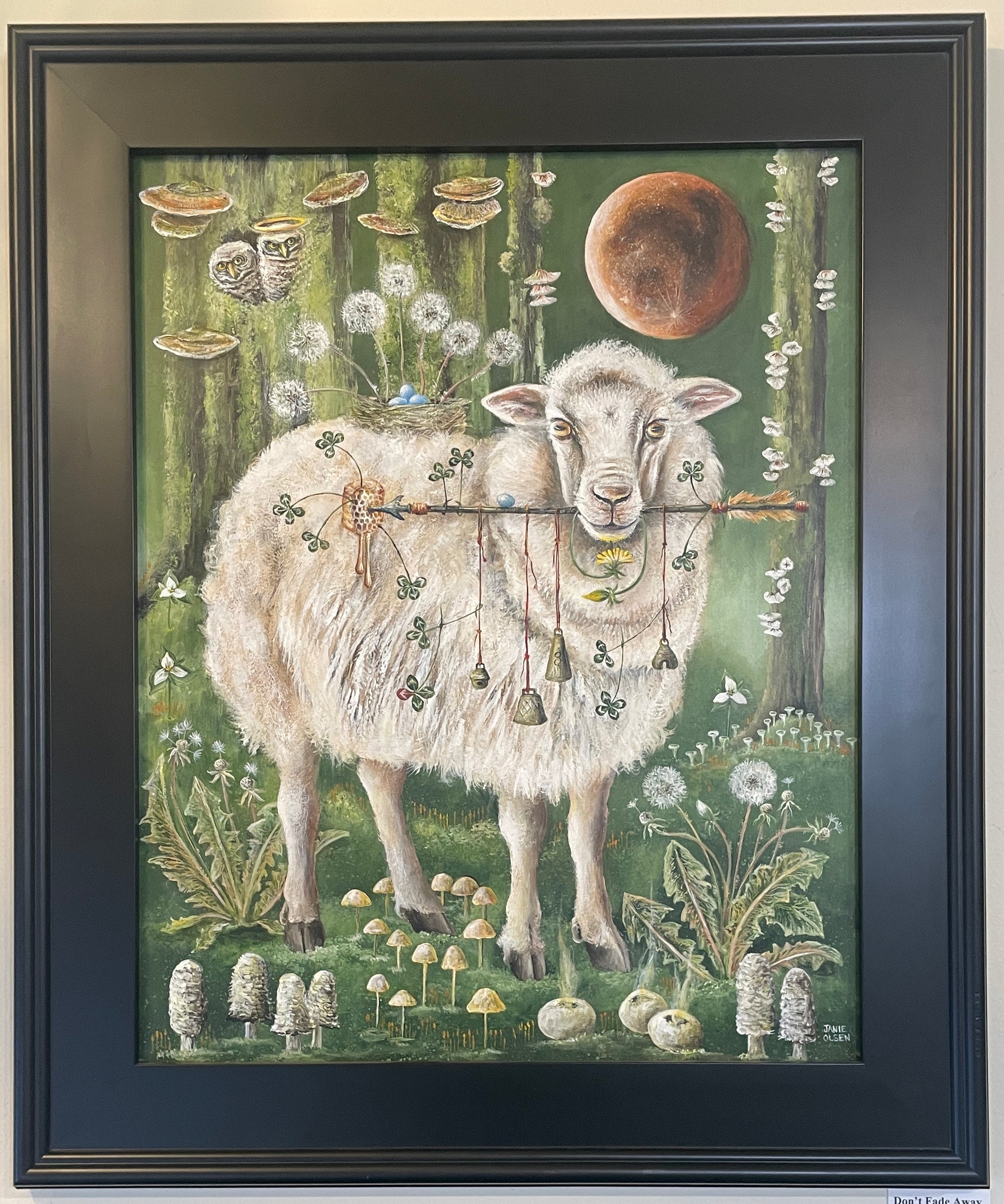 Framed original acrylic on panel, "Don't Fade Away" is 24" 7/8 x 20" 7/8 (with the frame).