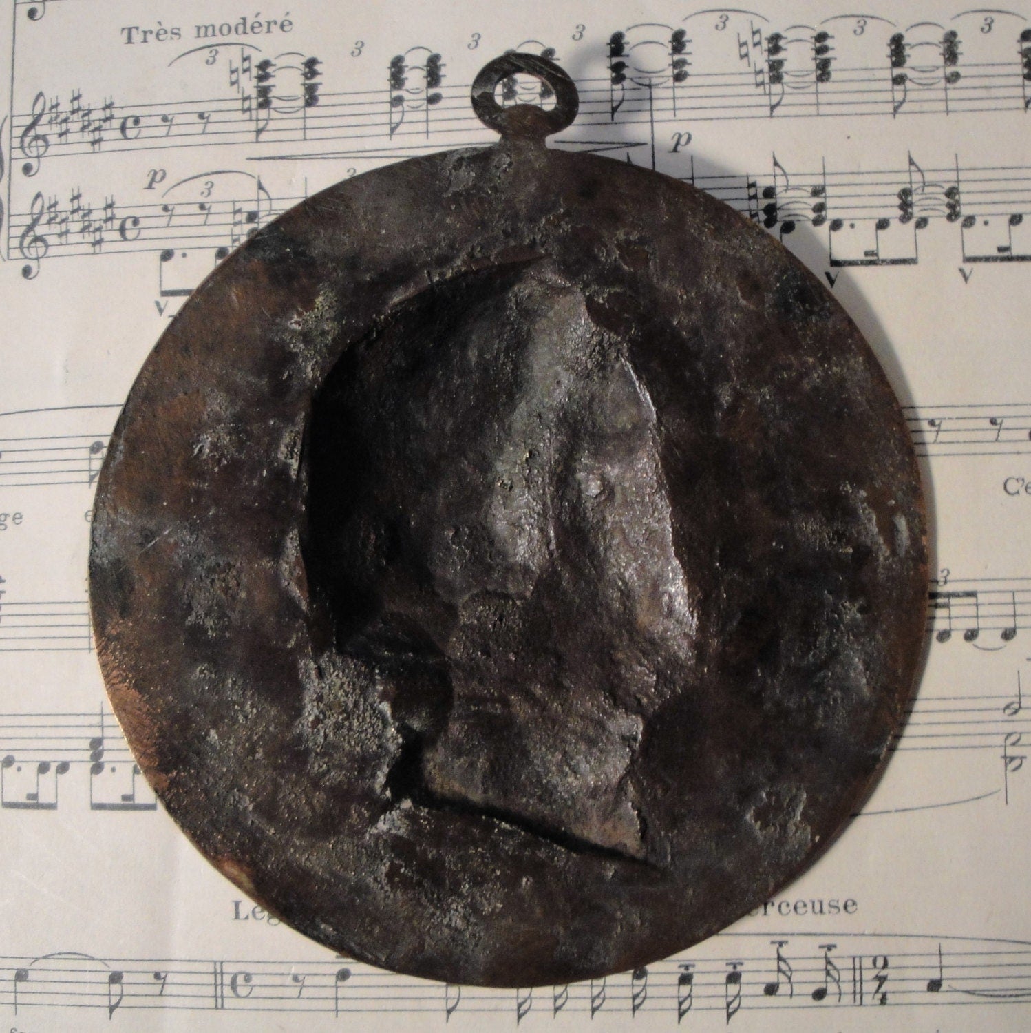 French Antique Victor Hugo Bronze Wall Plaque c1920. It has a copper finish on the front. A little bit of wear, but over all in good condition.