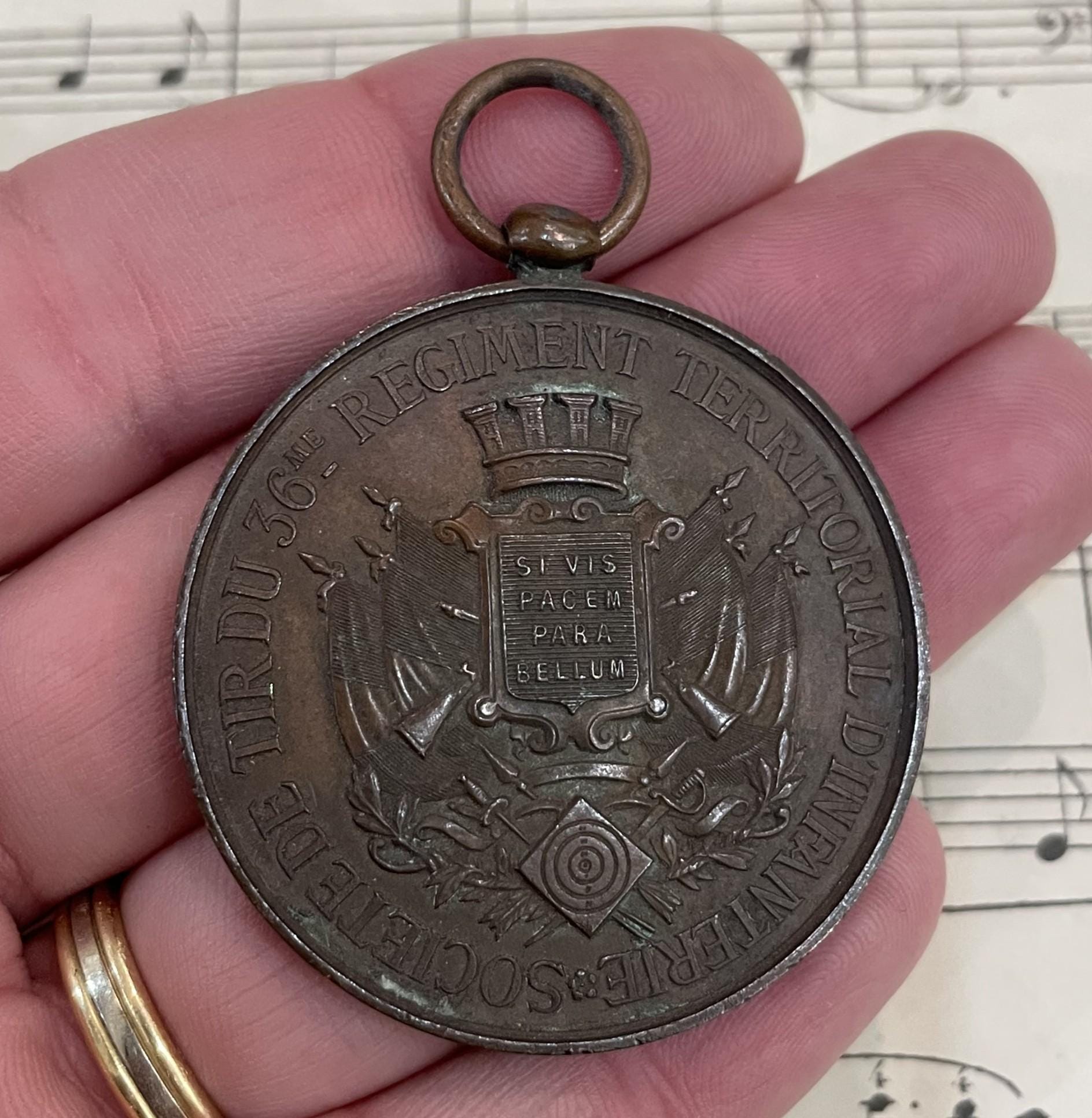 Large Antique French Bronze Art Nouveau Pendant Republique Francaise c1920. It's in good condition for its age.
