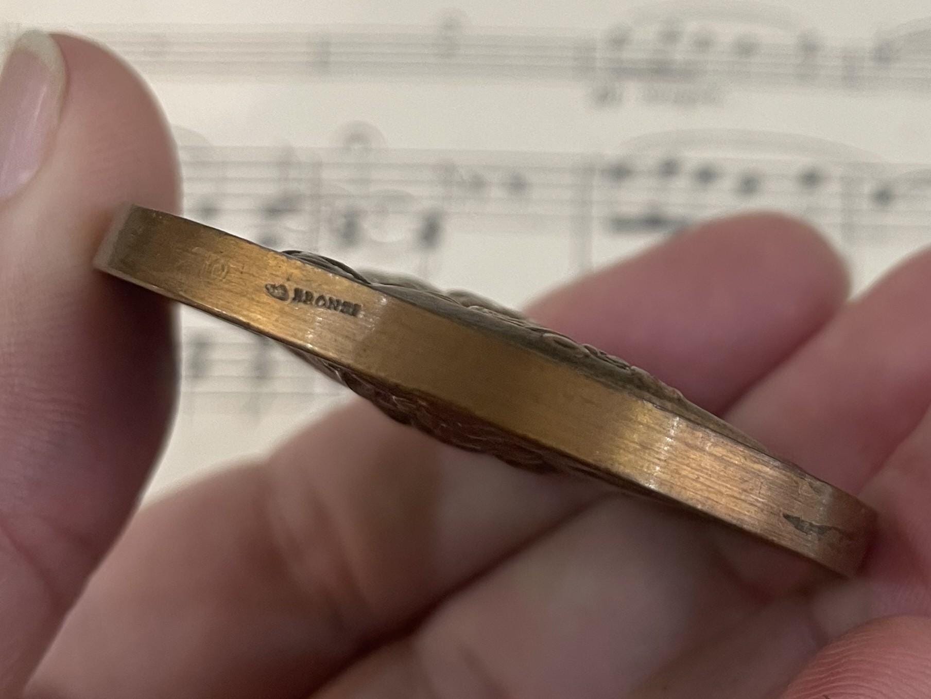 Large Antique French Bronze Jean Racine / Moliere Medal Signed Daumard Caunois c1920