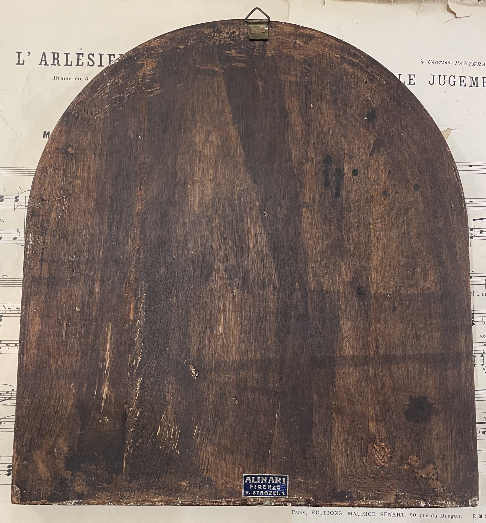 Large Antique Italian Angel Gabriel and Mary Icon Wooden Wall Plaque c1930