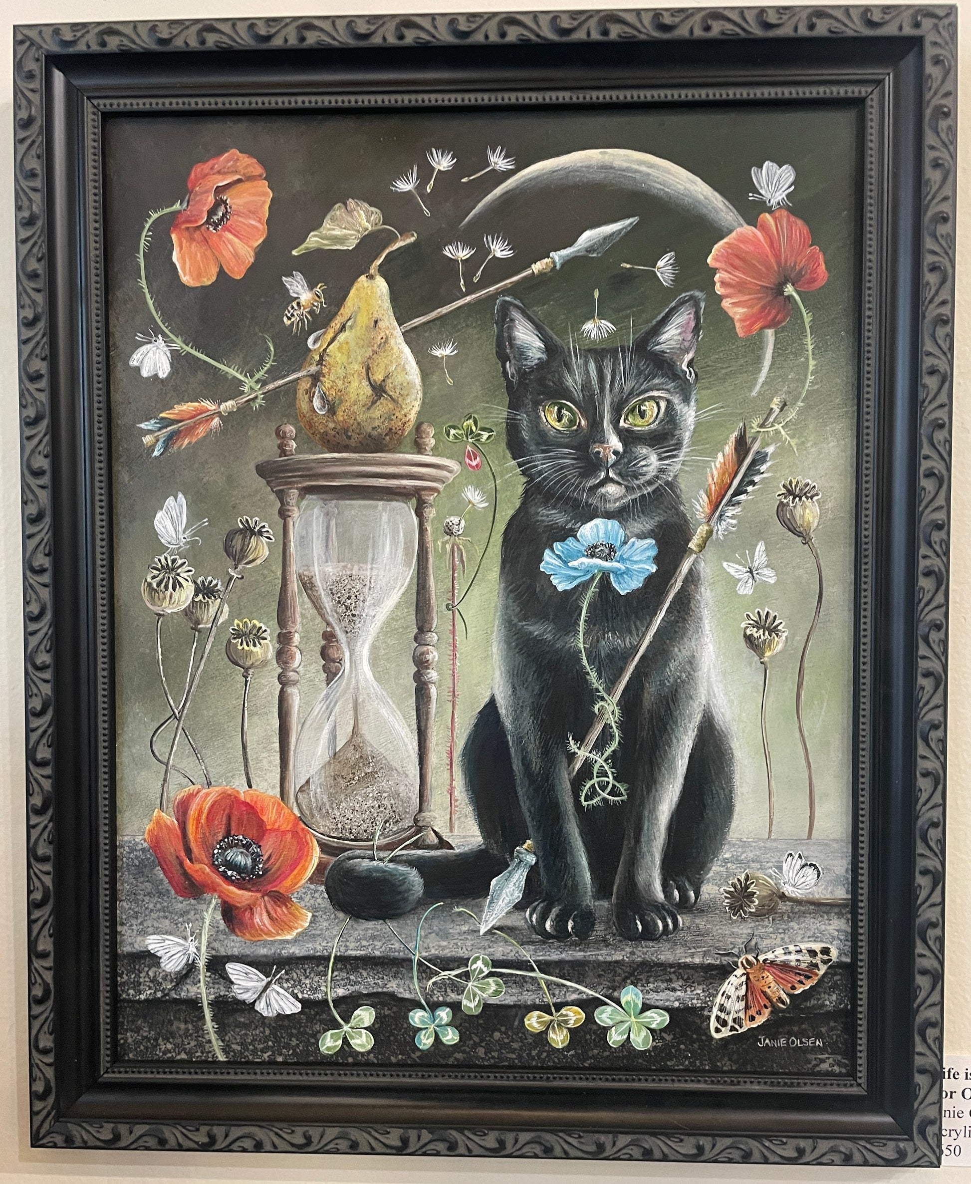 Framed original acrylic on panel, "Life is just too short for some, for others it just drags on" is 16" 1/8 x 13" 1/4 (with the frame).