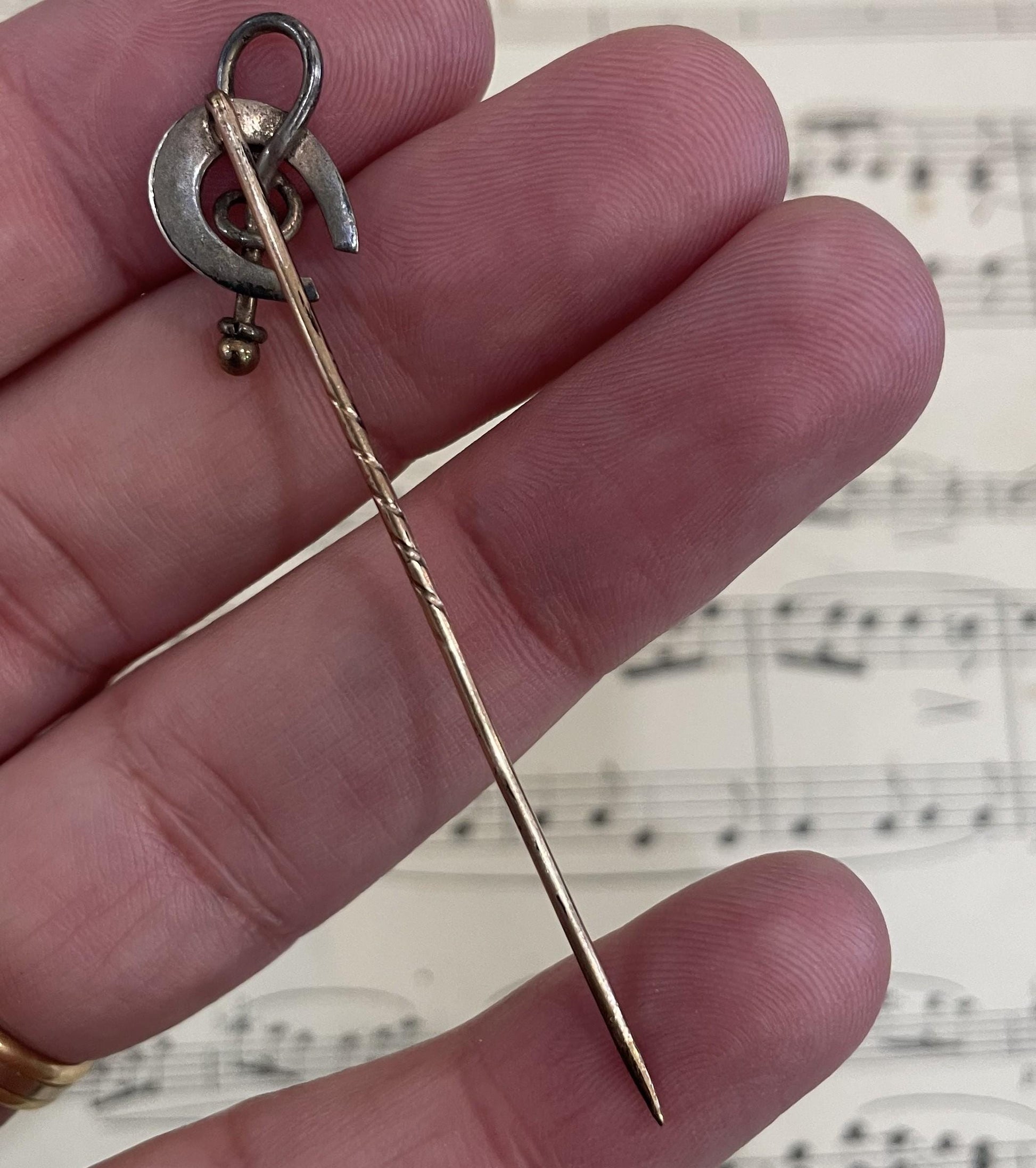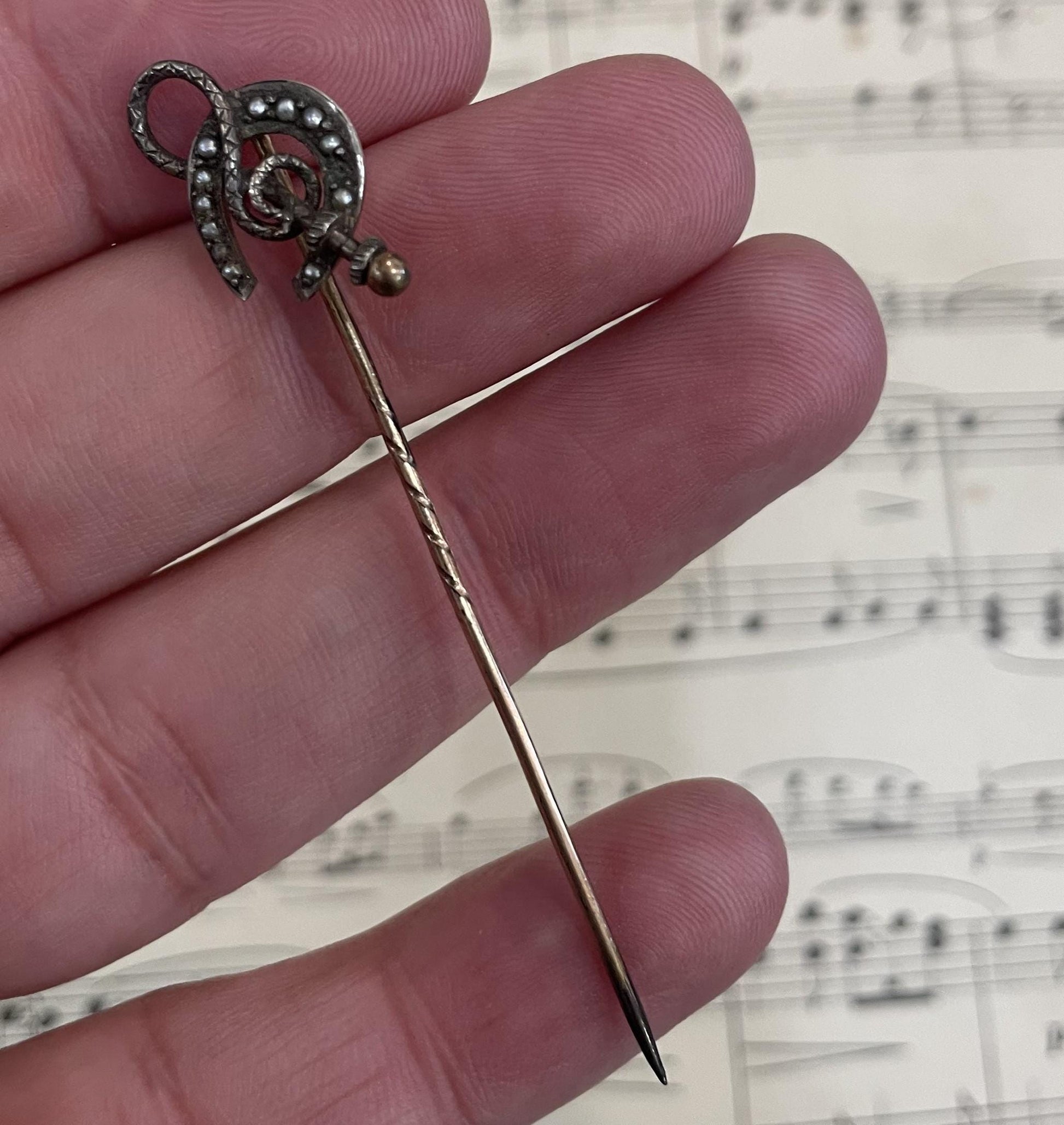 Rare Antique French Art Nouveau Hat Pin Horseshoe Pearls c1900