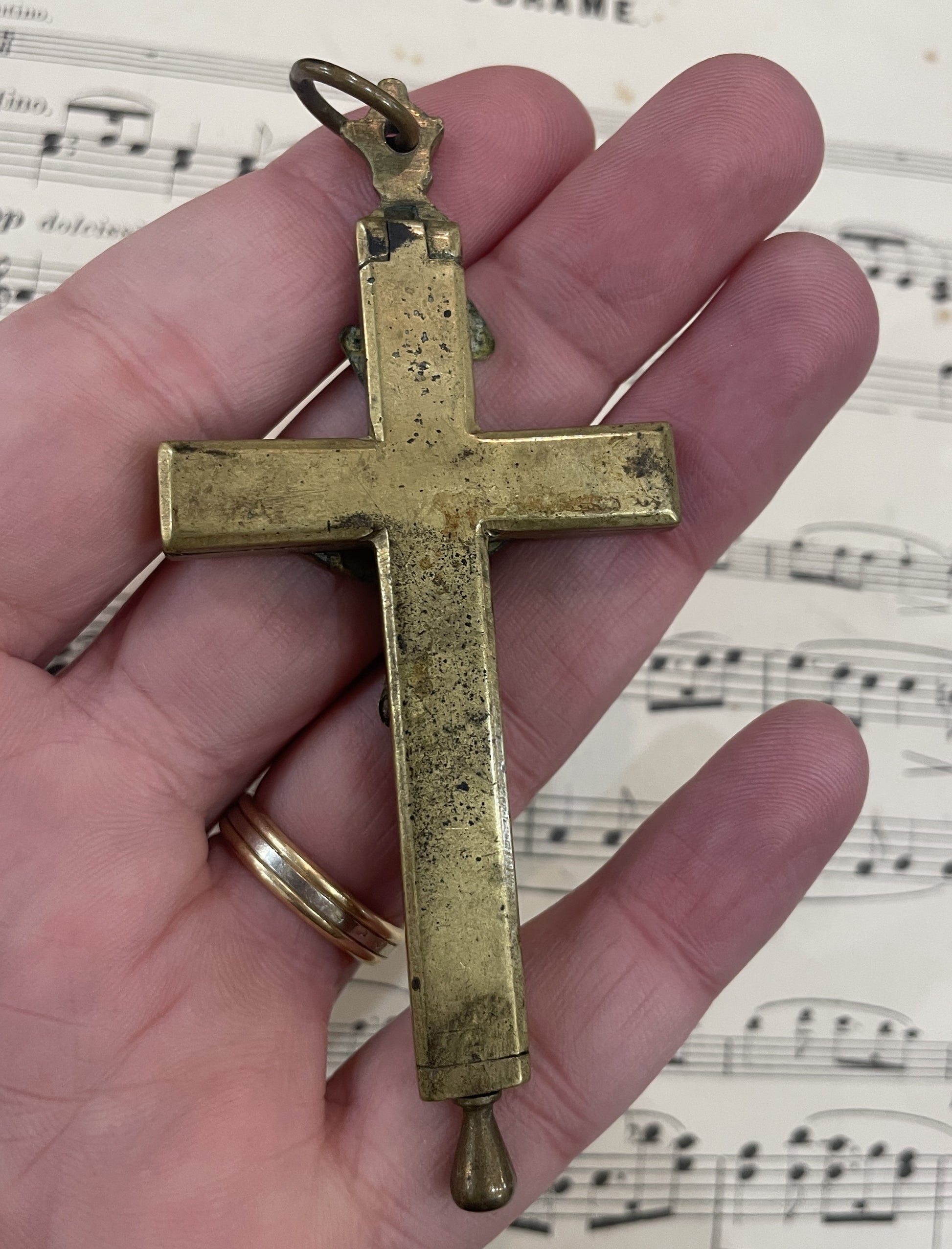 Rare Antique French Bronze Cross Crucifix Opens Reliquary c1880