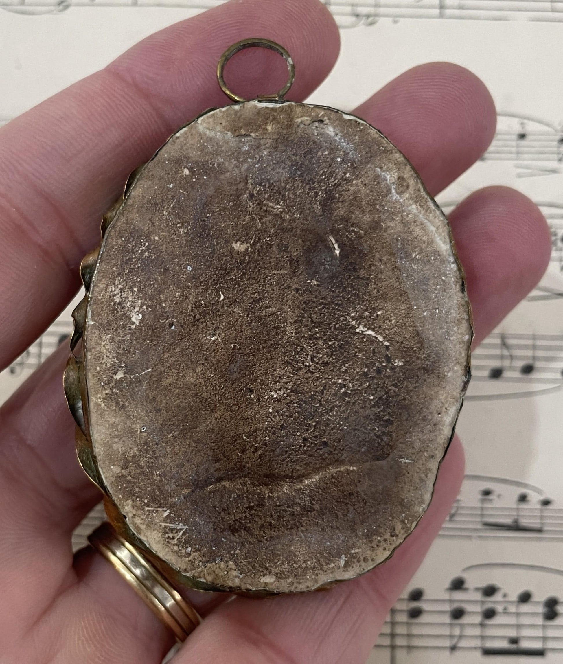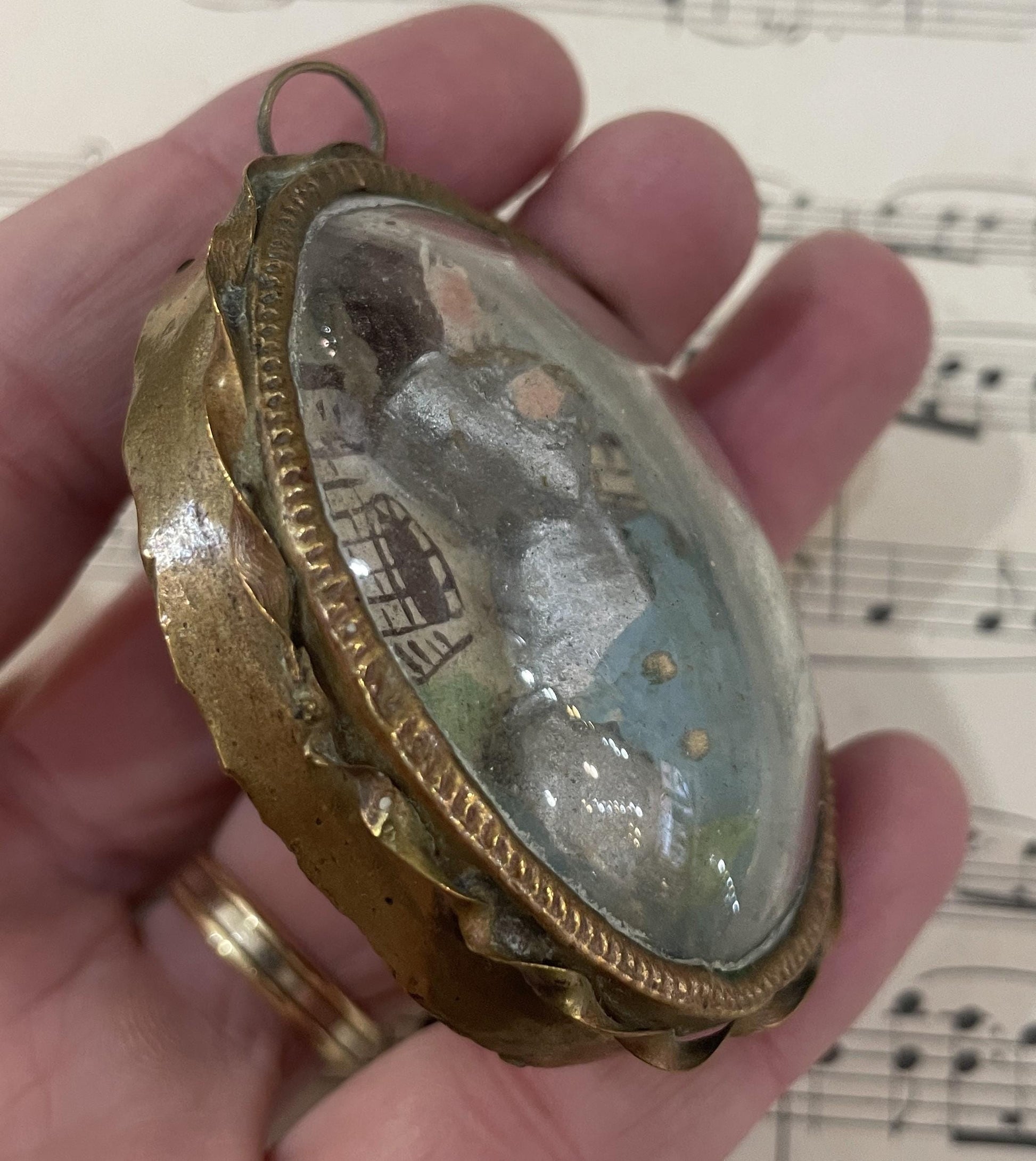 Rare Antique French Carved Plaster Joan of Arc under Domed Glass c1900. It's in good condition for its age.