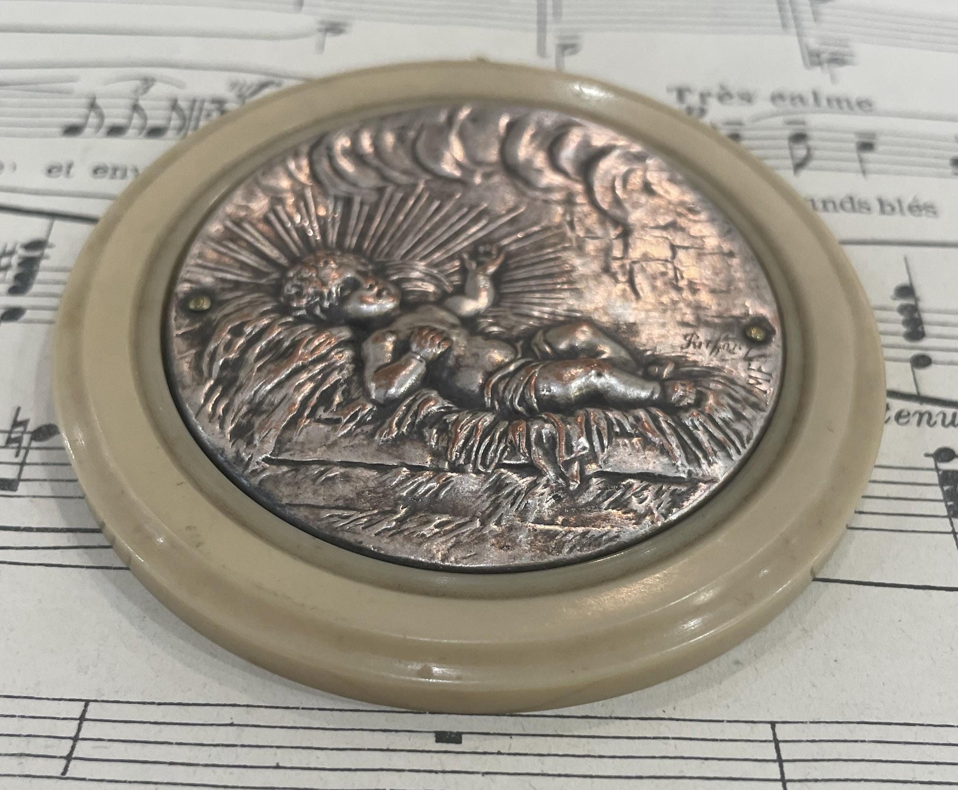 Rare Antique French Crib Cradle Protector Baby Celluloid Baptism Signed Ruffony c1920