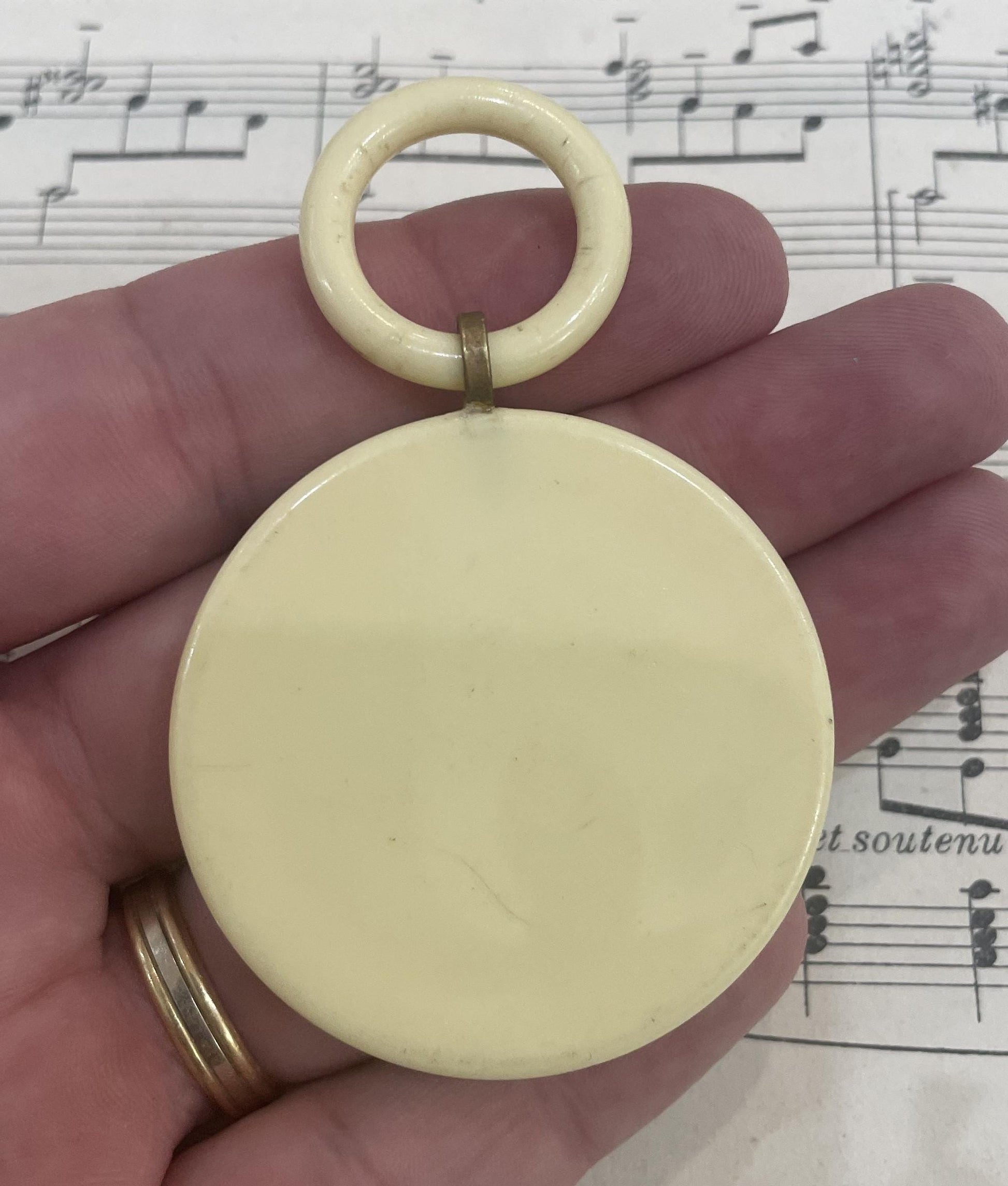 Rare Antique French Enameled Crib Cradle Protector Virgin Mary Celluloid Baptism c1920. It's in good condition for its age.