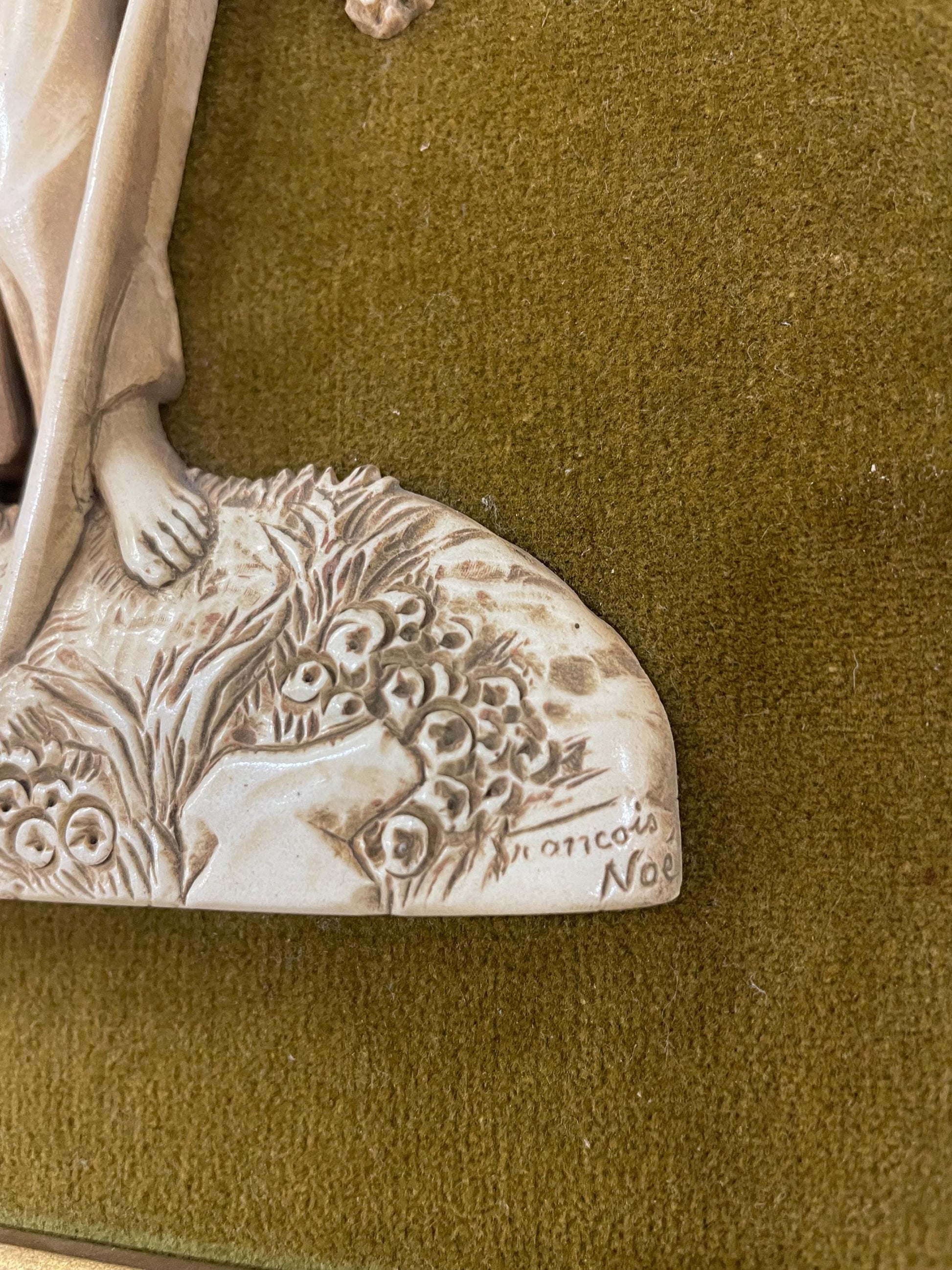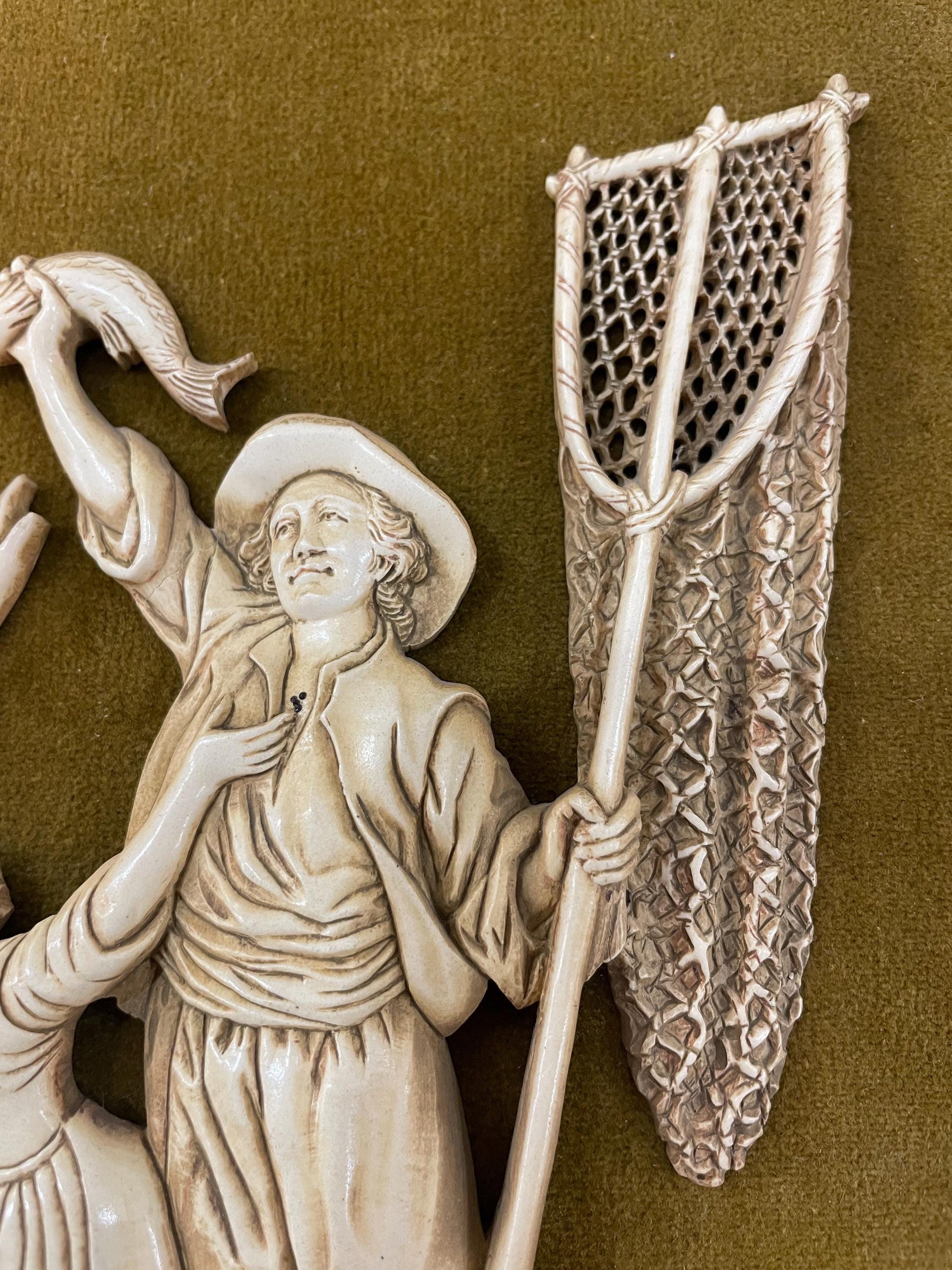 Rare Antique French Icoryl Faux Ivoire Fisherman Signed Francois Noe Frame c1940