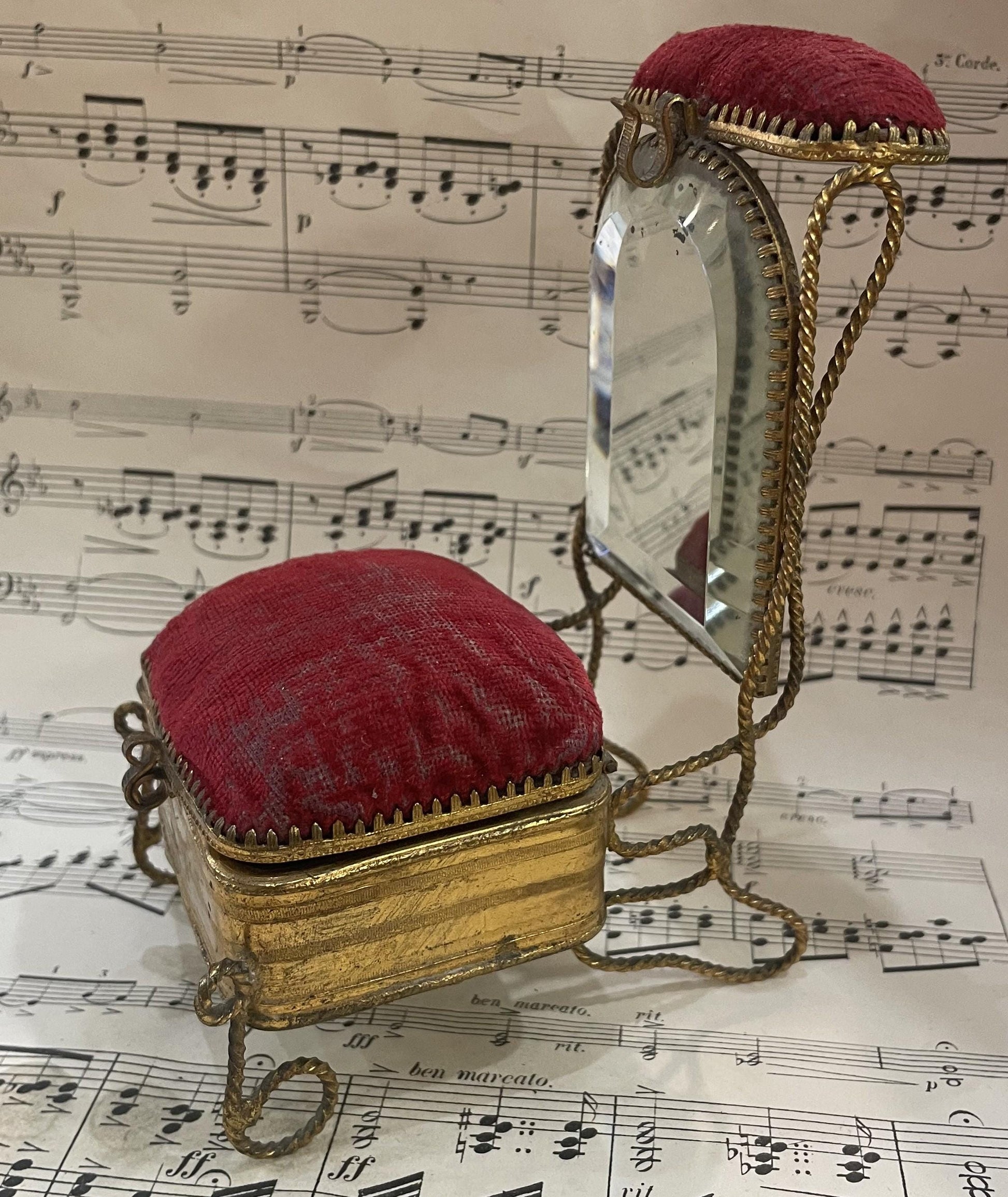 Rare Antique French Jewelry Box Prie-Dieu with Mirror c1900. A little bit of wear but overall in good condition for its age. A true collector's piece!
