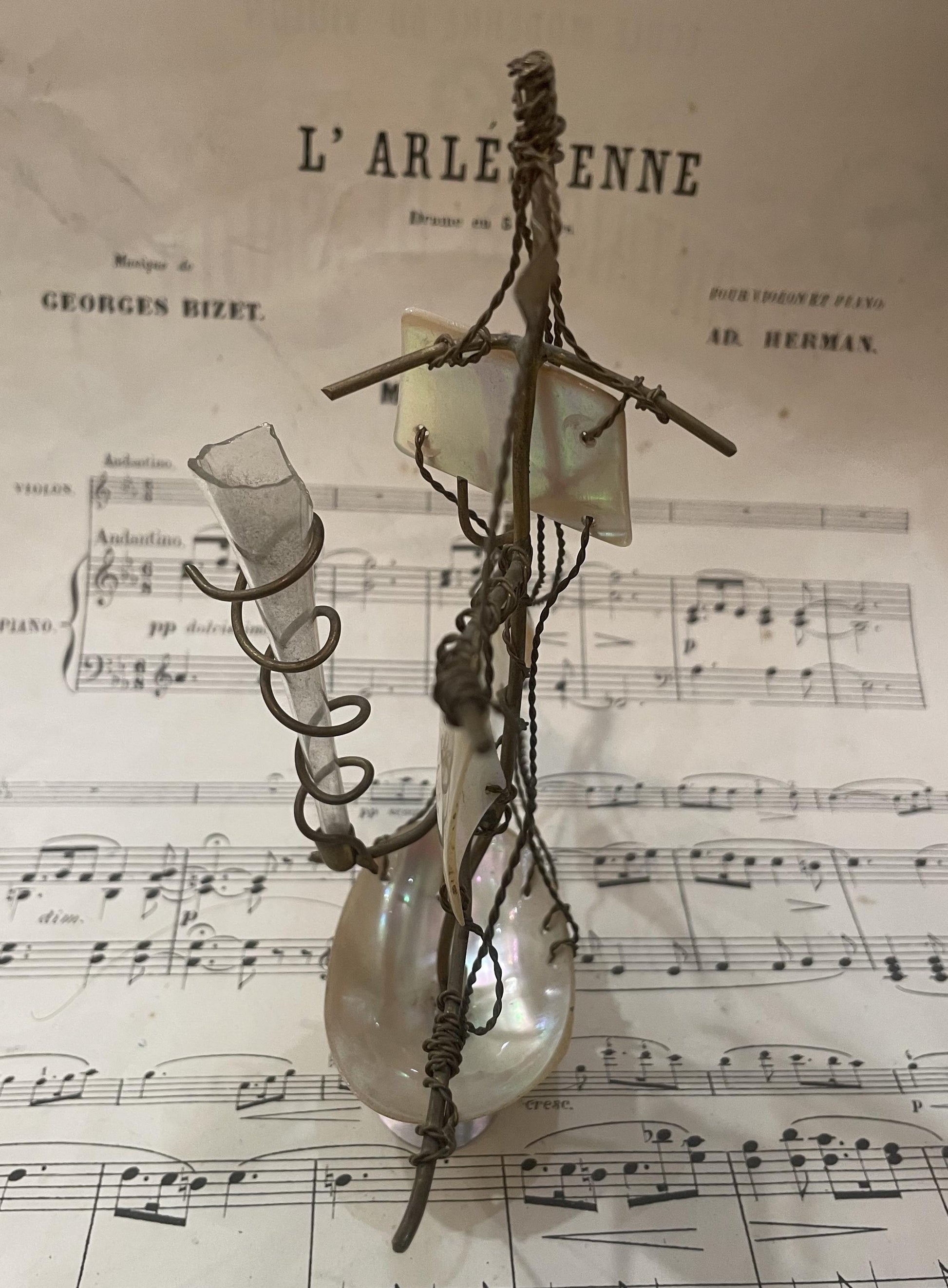 Rare Antique French Mother of Pearl Boat Souvenir of Cherbourg c1880
