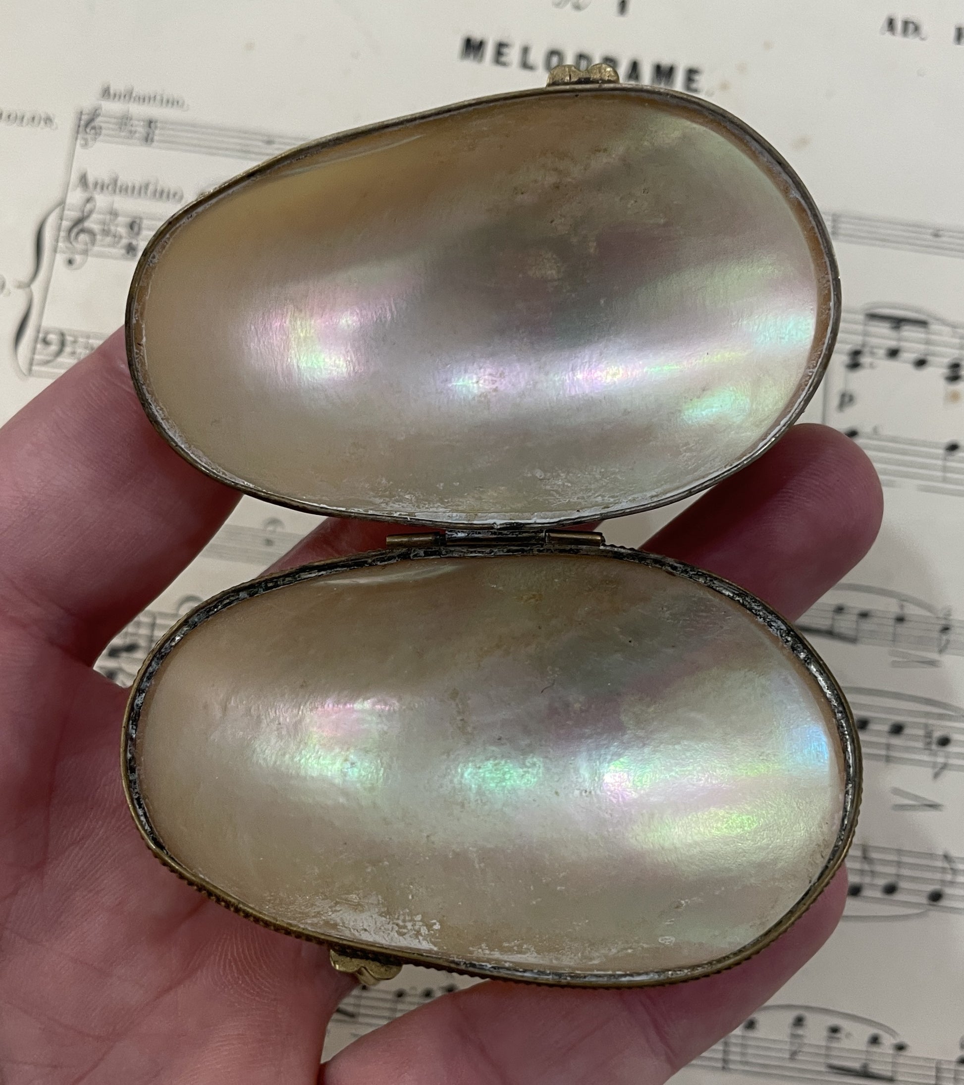 Rare Antique French Mother of Pearl Rosary Case Holder Box c1880. It opens and closes nicely. It's in good condition for its age.