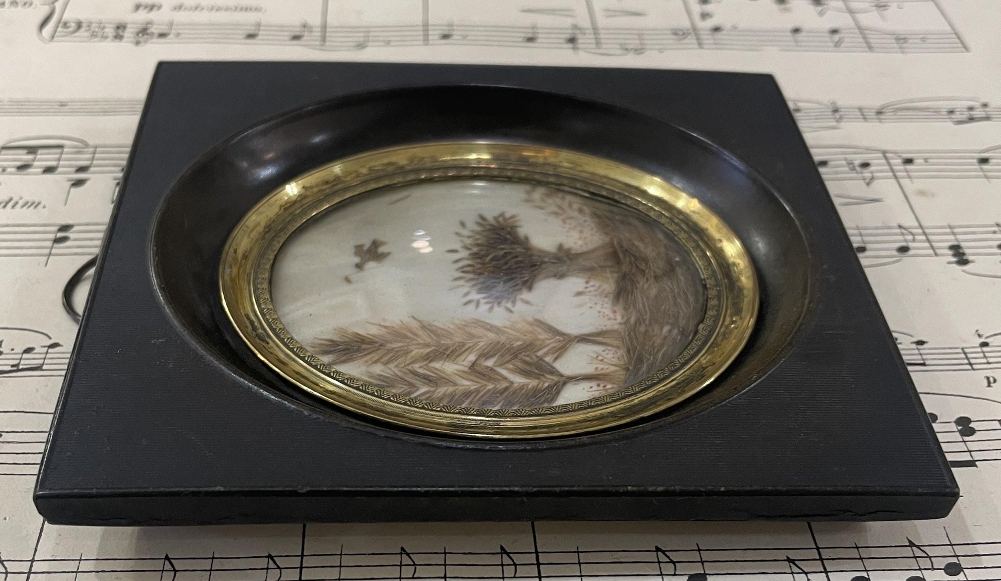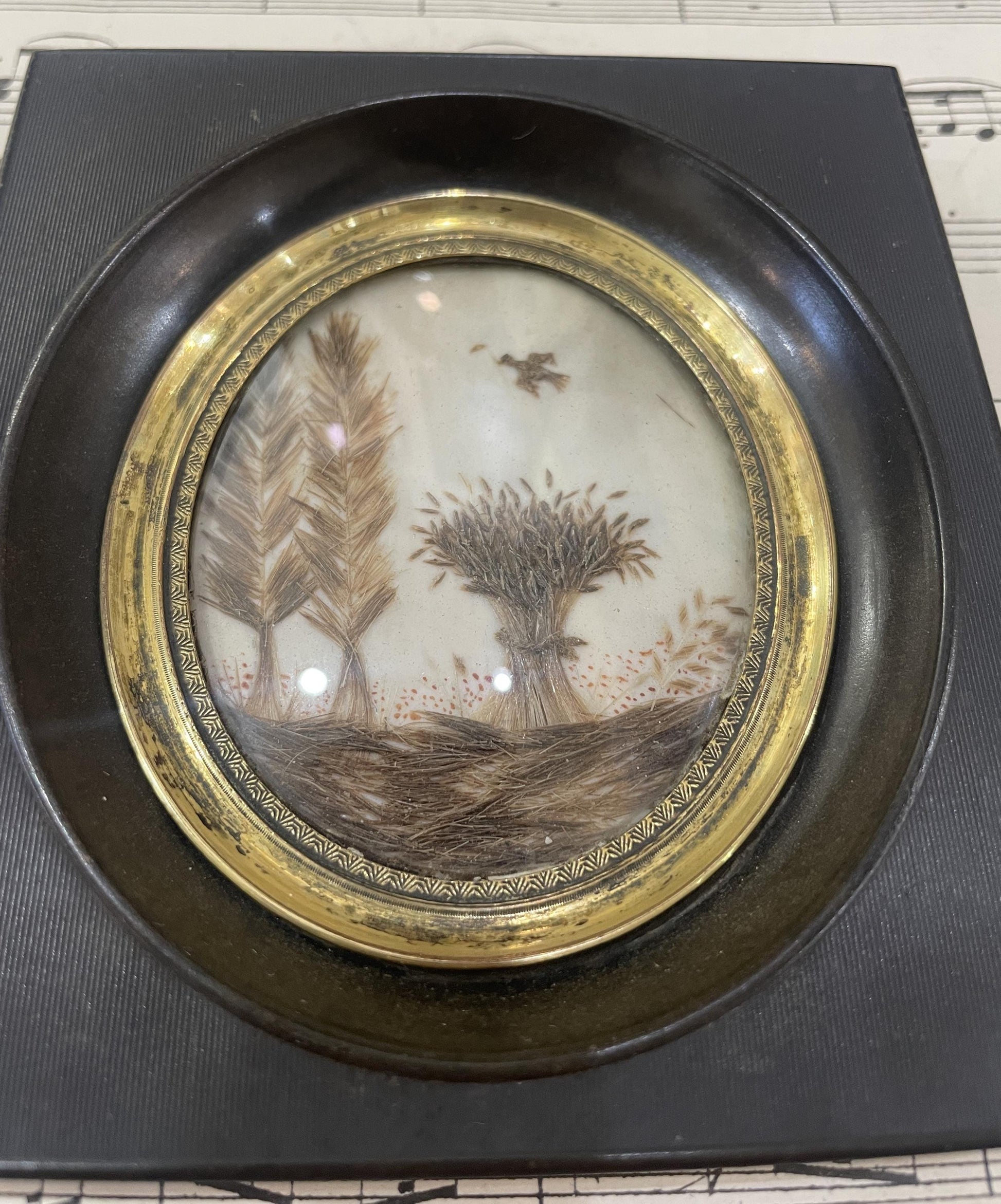 Rare Antique French Mourning Hair Art Domed Glass Wooden Frame Bird Trees c1860. It's in good condition for its age. A true collector's piece!