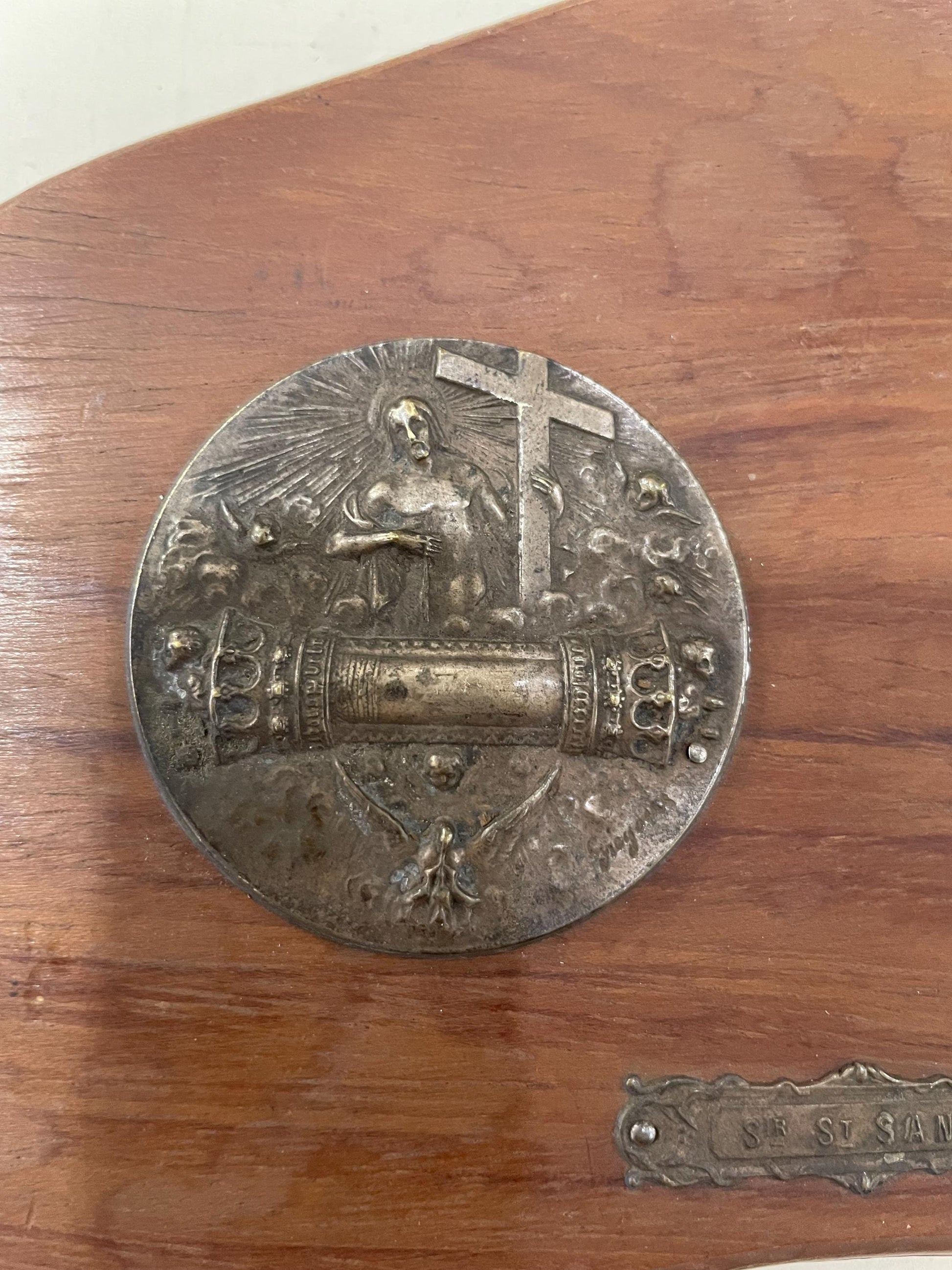 Rare Antique French Religious Plaque Holy Blood Jesus c1920