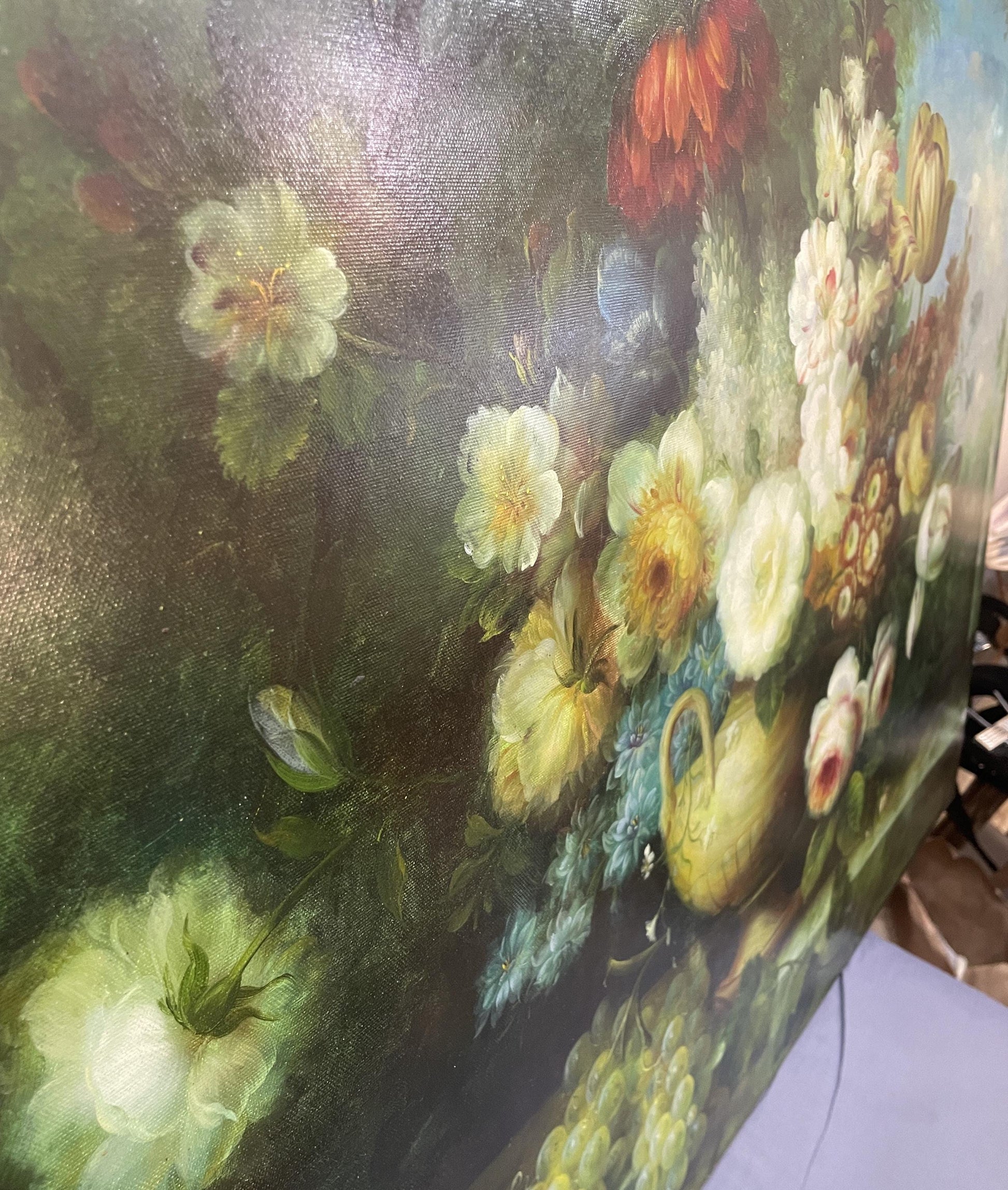 Rare Large Antique Flemish Oil on Canvas Still Life Painting Signed L. Van Hove c1940. Beautiful still life with multiple flowers and grapes, in the traditional Flemish style. Signed by L. Van Hove. A couple minor scratches but overall in good condition for its age. A true collector's piece!