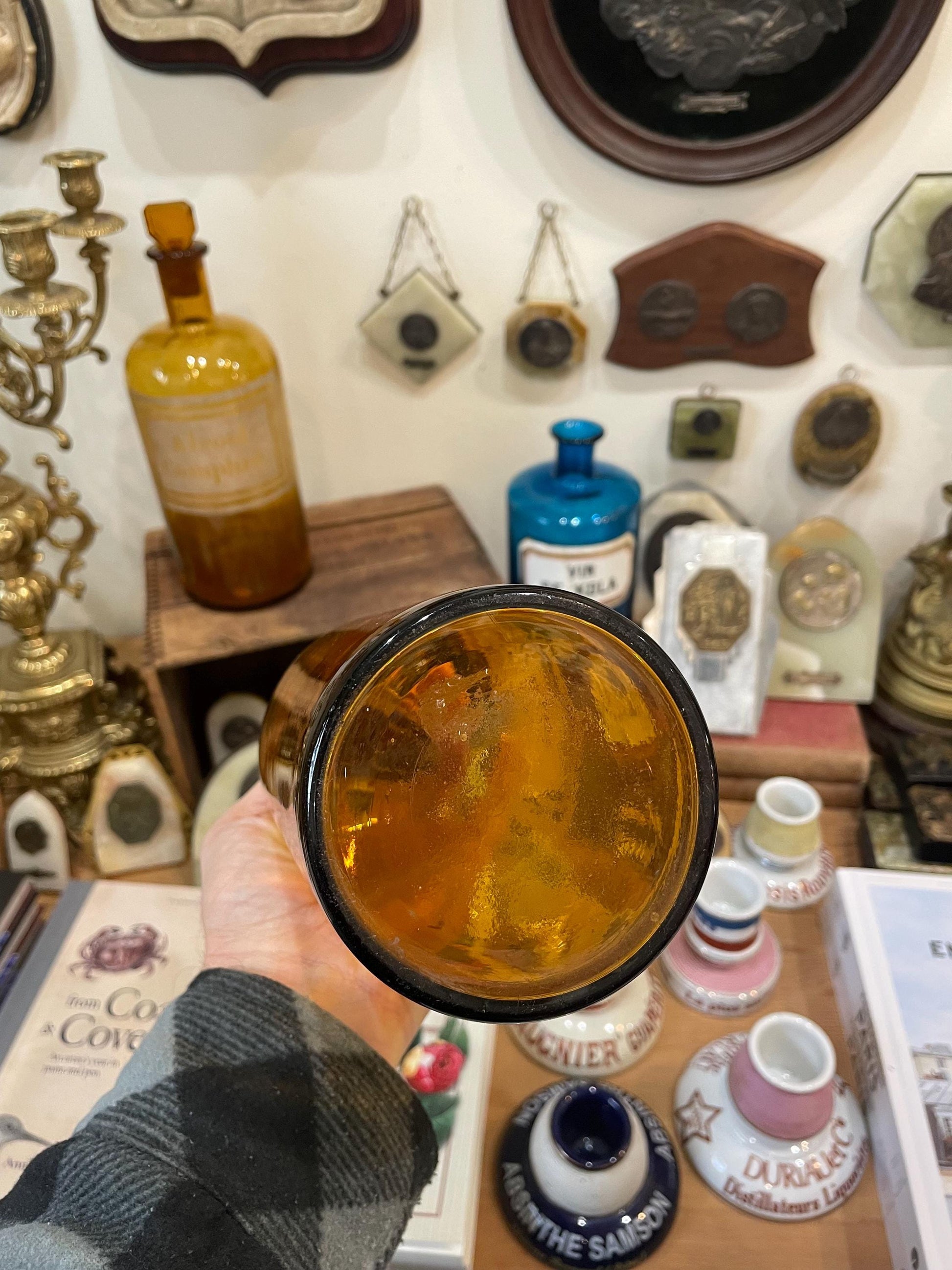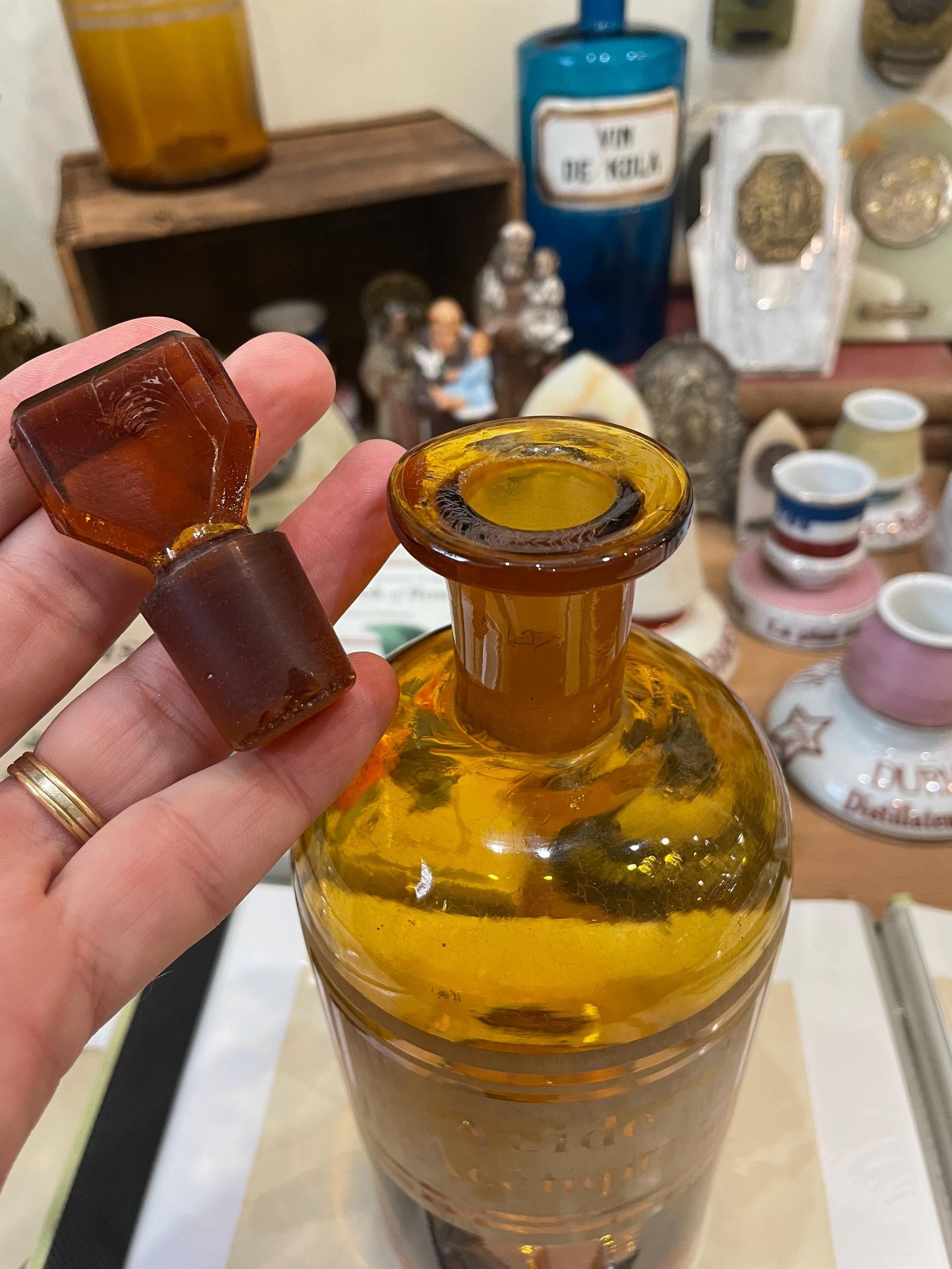 Rare Large Antique French Apothecary Bottle Amber Glass Acide Acetique c1880. It's slightly larger than the ones we usually see from that time period. It's in good condition for its age.