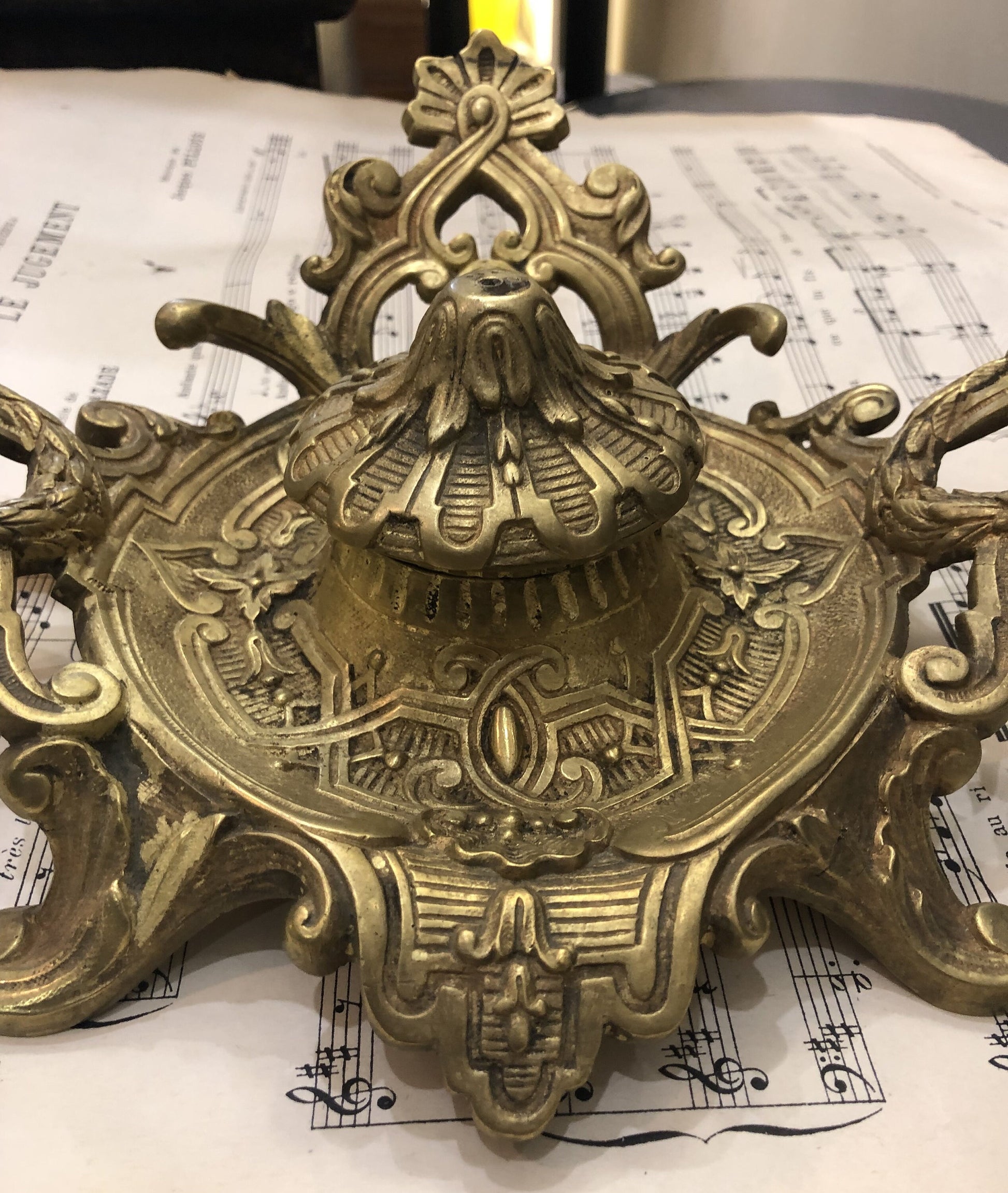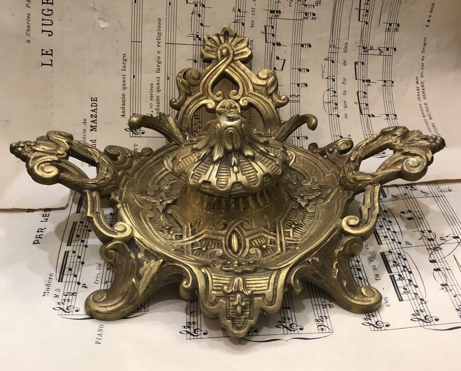 Rare Large Antique French Art Nouveau Bronze Inkwell c1900