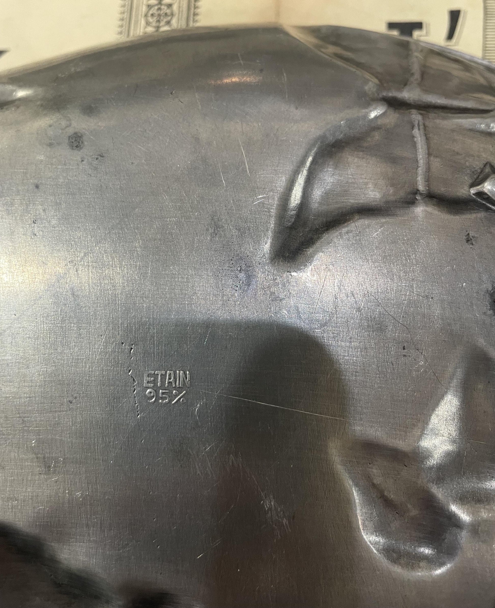 Rare Large Antique French Art Nouveau Pewter Tray Butterfly Roses c1920. A little bit of wear and a couple stains (see photos). It's in good condition.