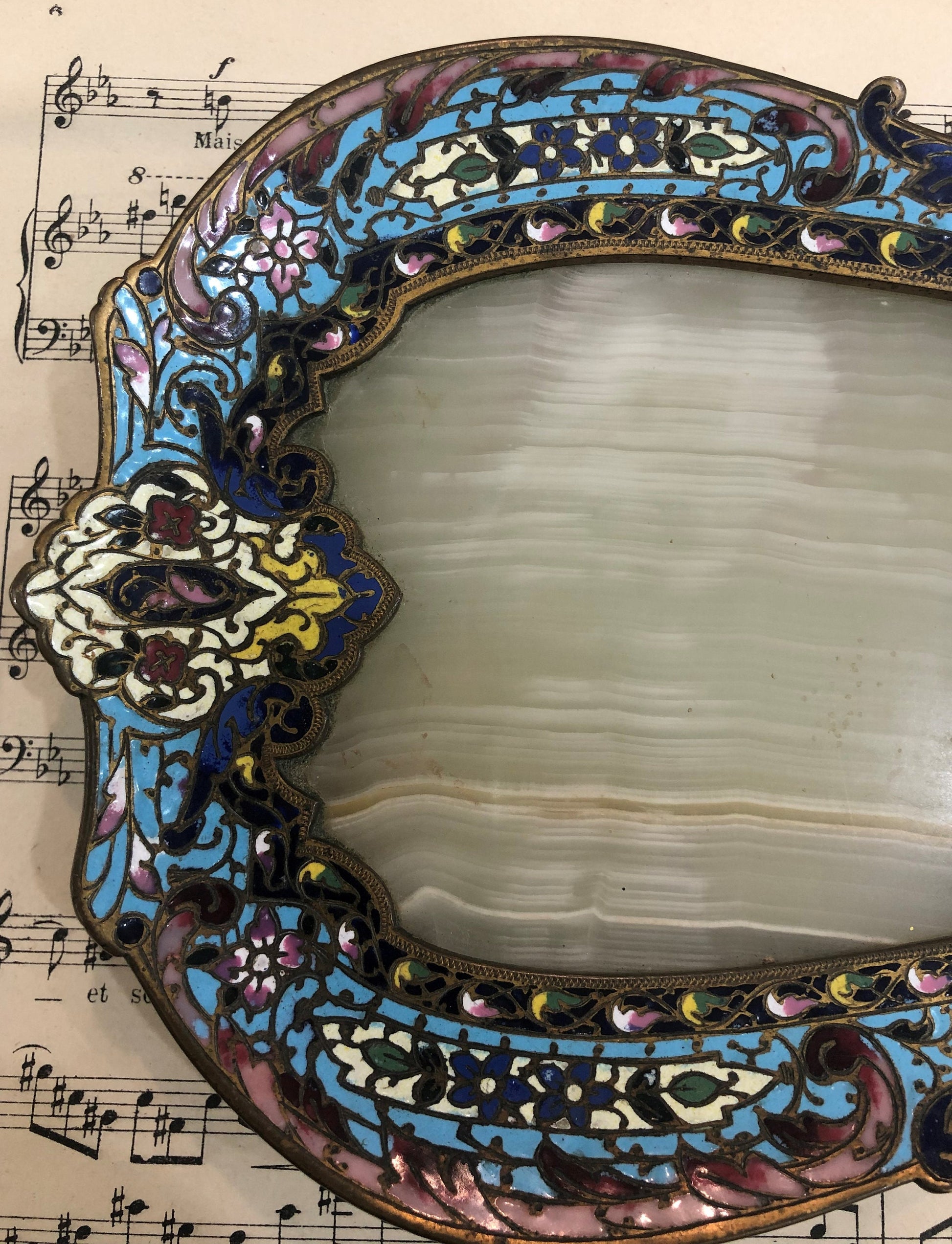 Rare Large Antique French Bronze Champleve Enamel Onyx Tray Platter Centerpiece c1880