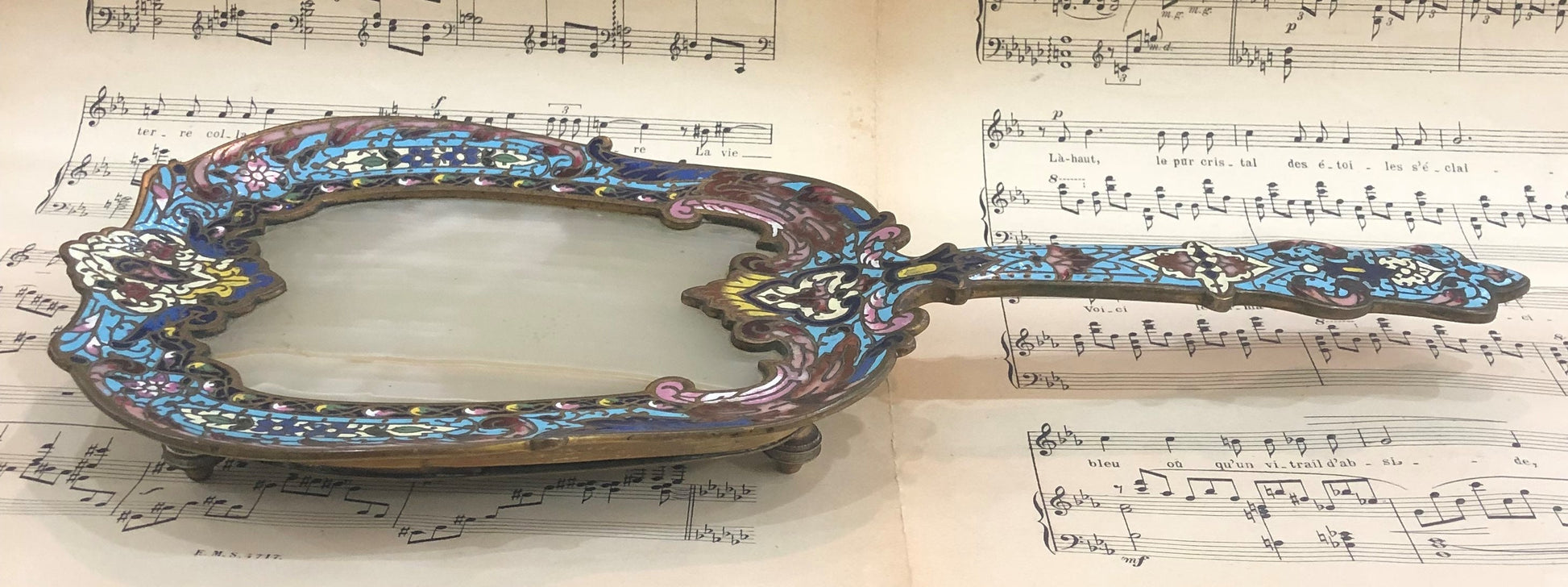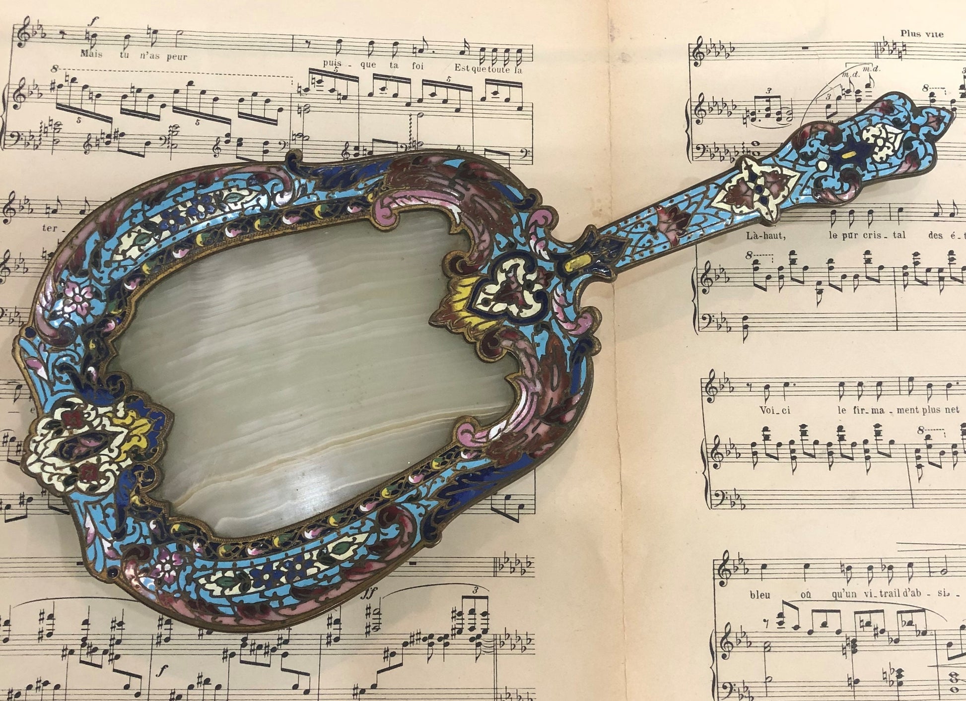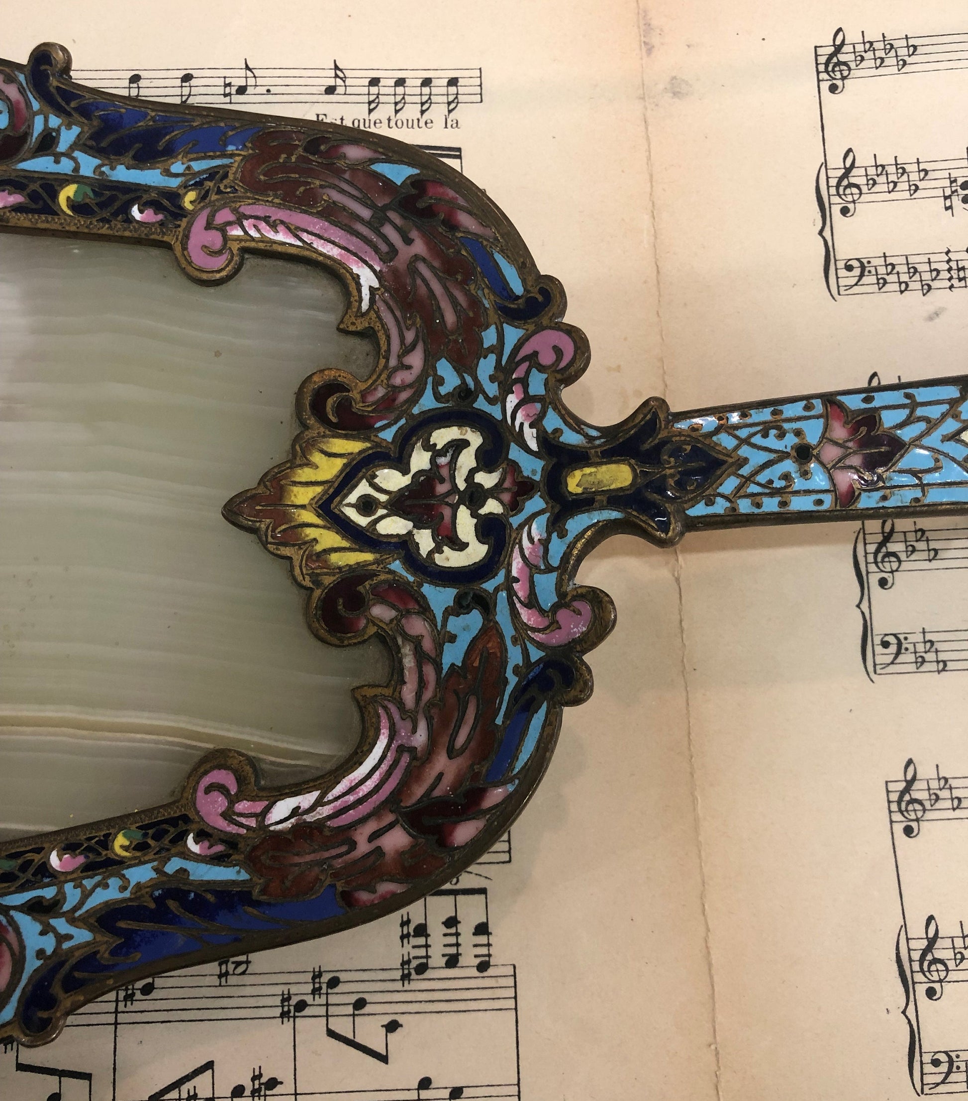 Rare Large Antique French Bronze Champleve Enamel Onyx Tray Platter Centerpiece c1880. It's in good condition for its age. A rare and beautiful piece!
