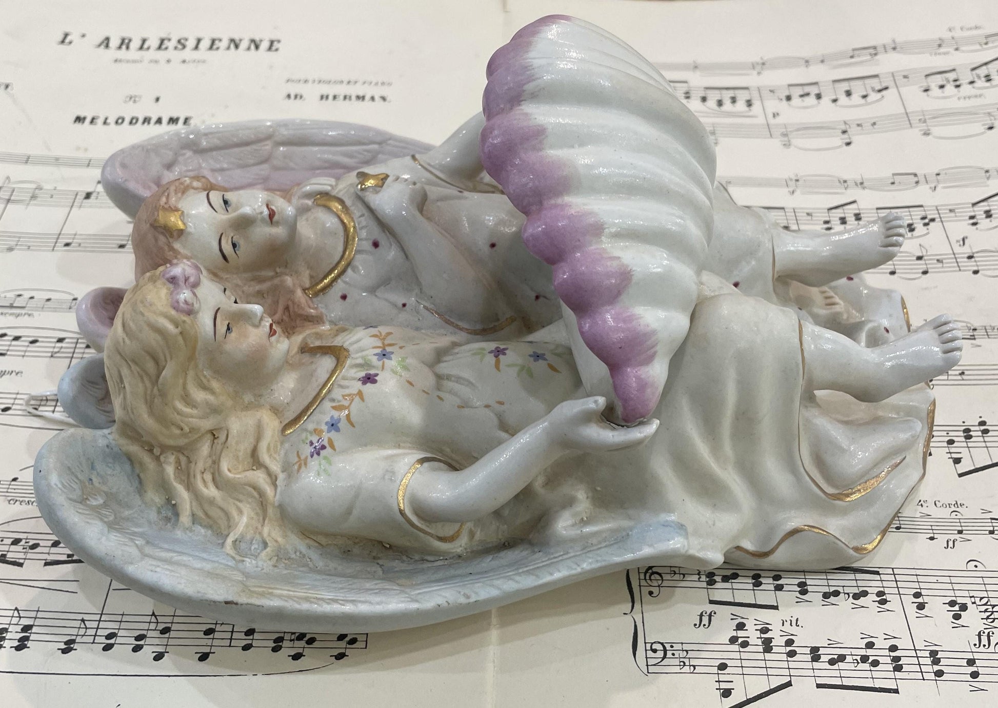 Rare Large Antique French Porcelain Angel Holy Water Font c1880. It's in very good condition for its age. A true collector piece!