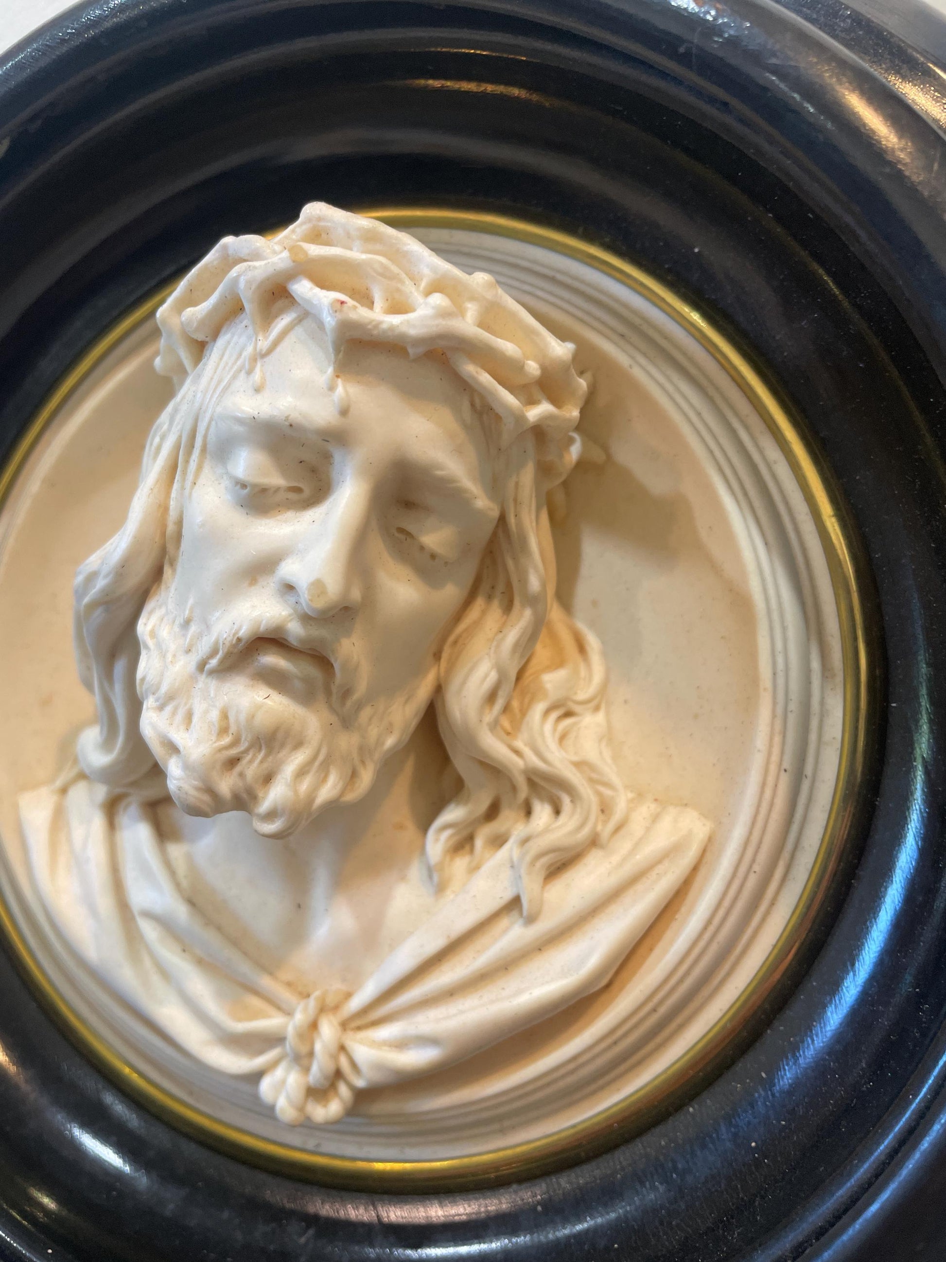 Rare Large French Antique Carved Plaster Jesus Signed Wall Icon c1854