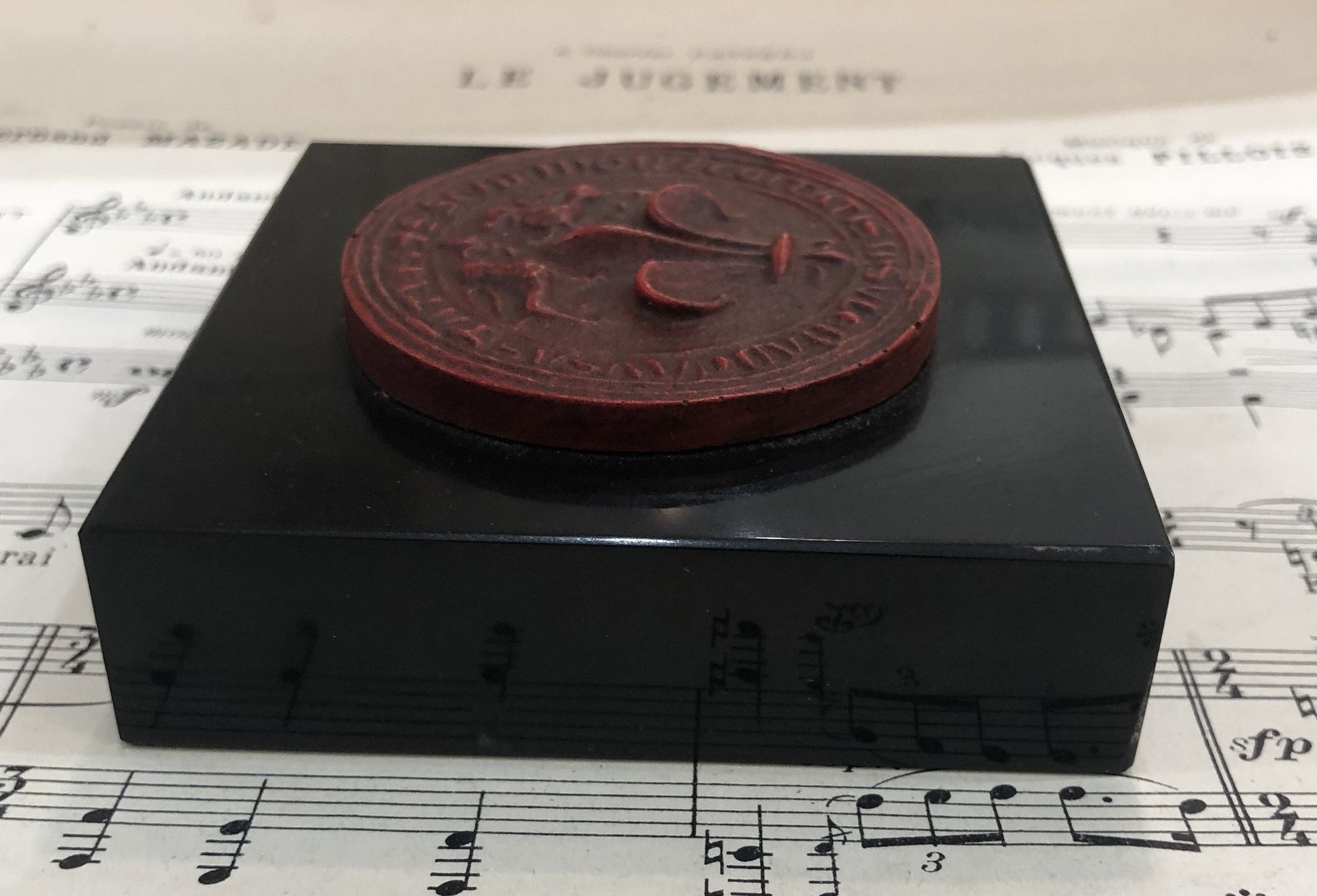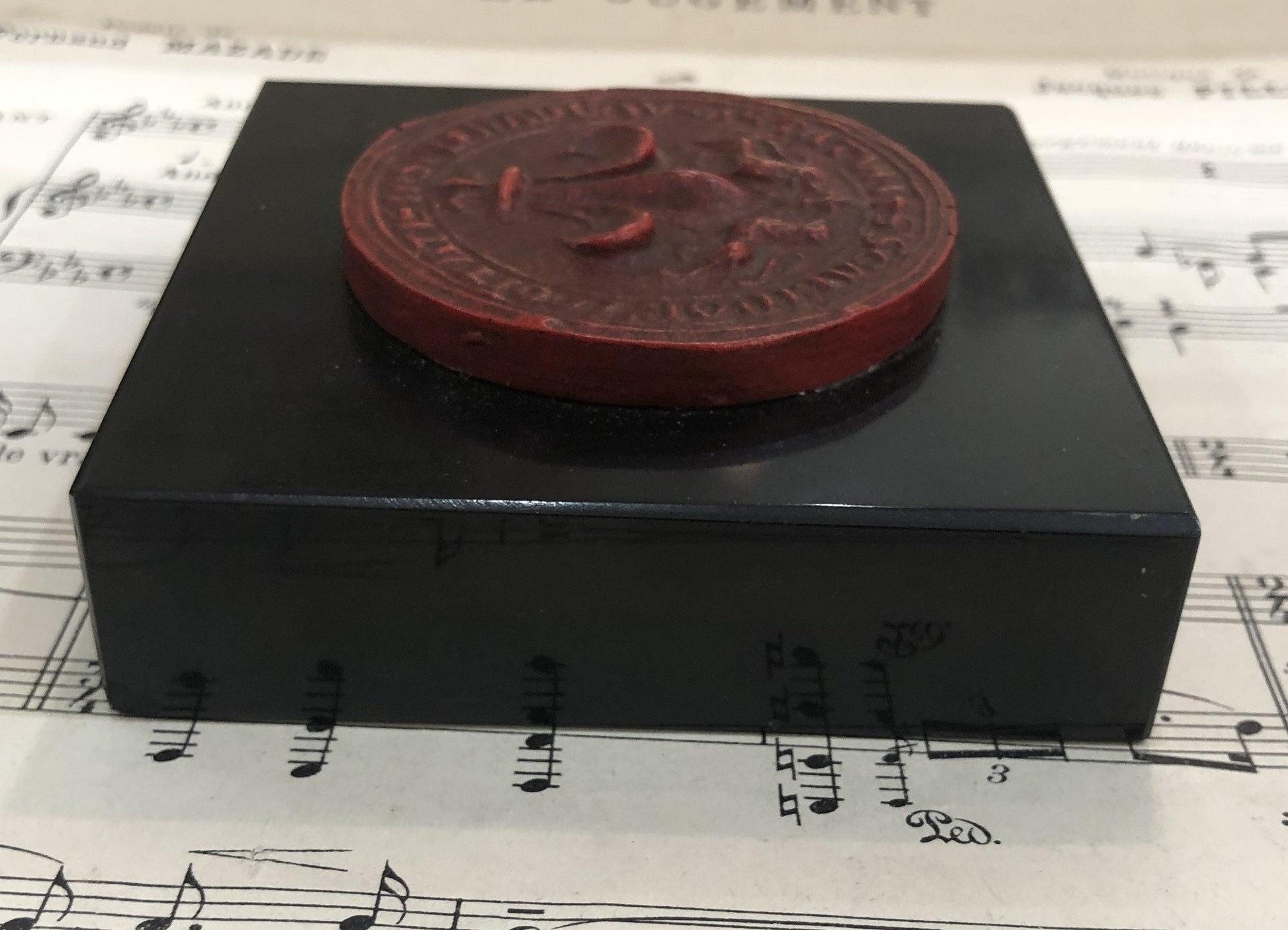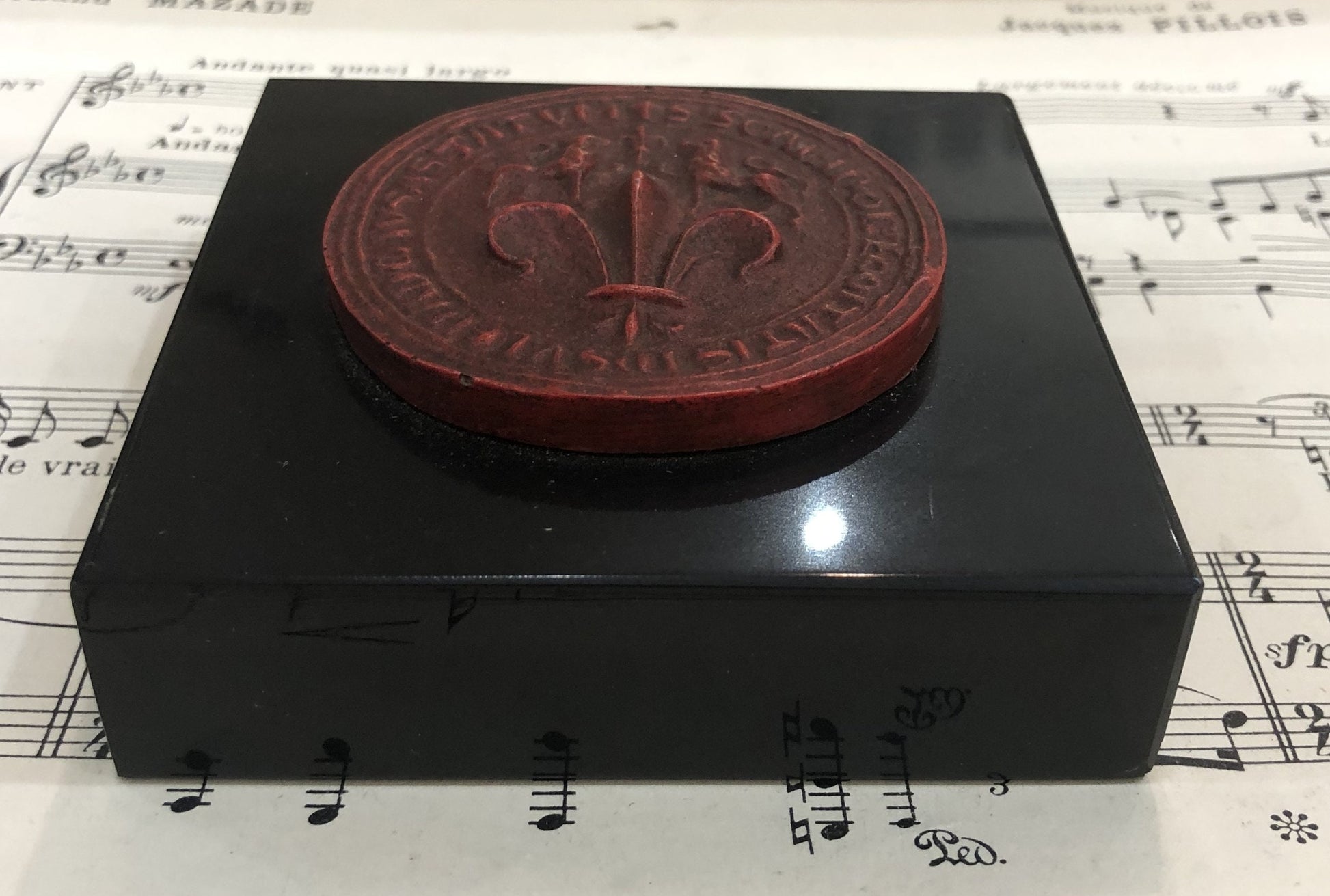 Rare Vintage Fleur de Lys from the Louvres Museum Souvenir Shop Paperweight c1960. A couple small chips on the bottom of the base of the marble (see photos) but overall in good condition.