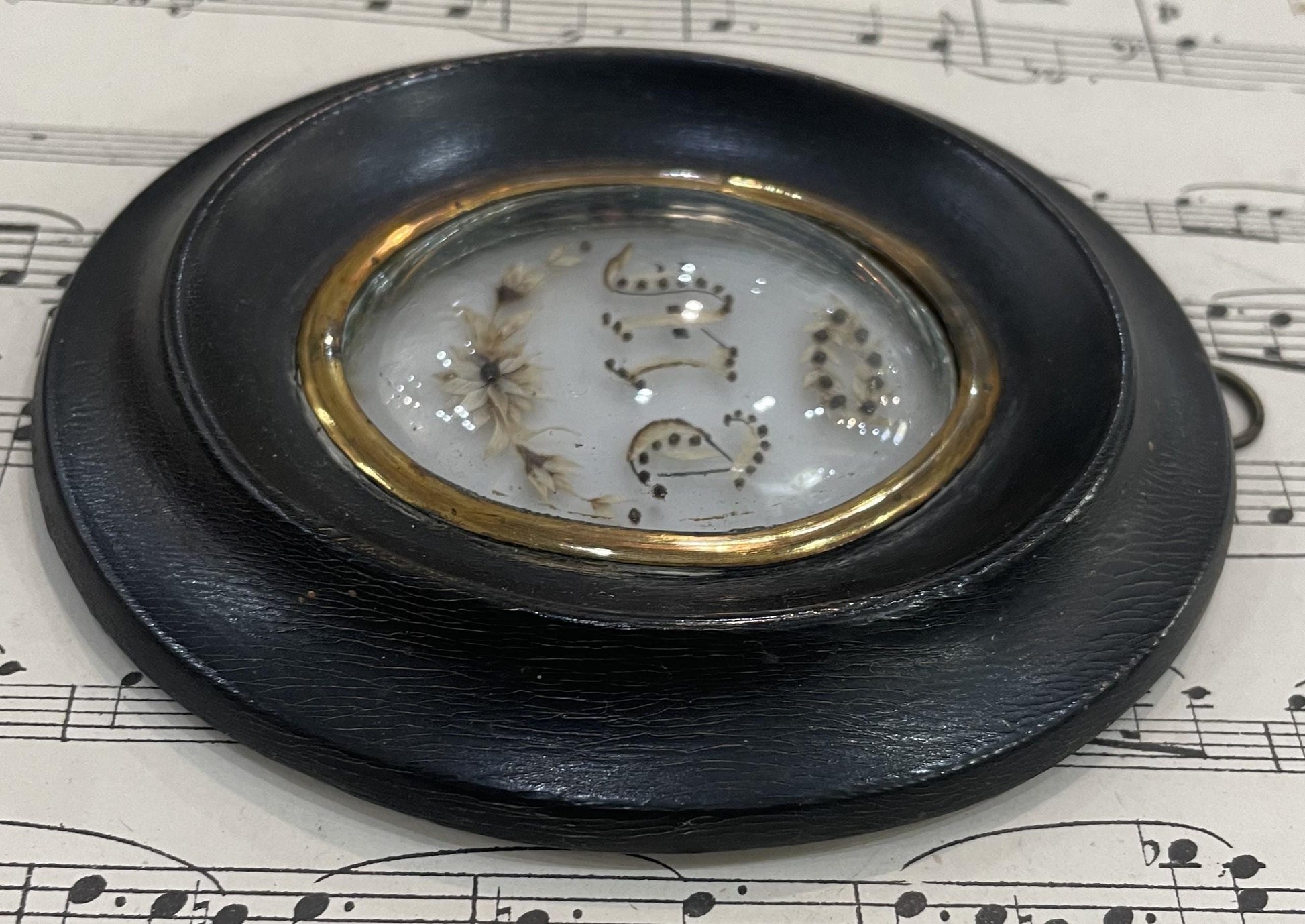 Small Antique French Mourning Hair Art Domed Glass Wooden Frame Flower Crown c1880