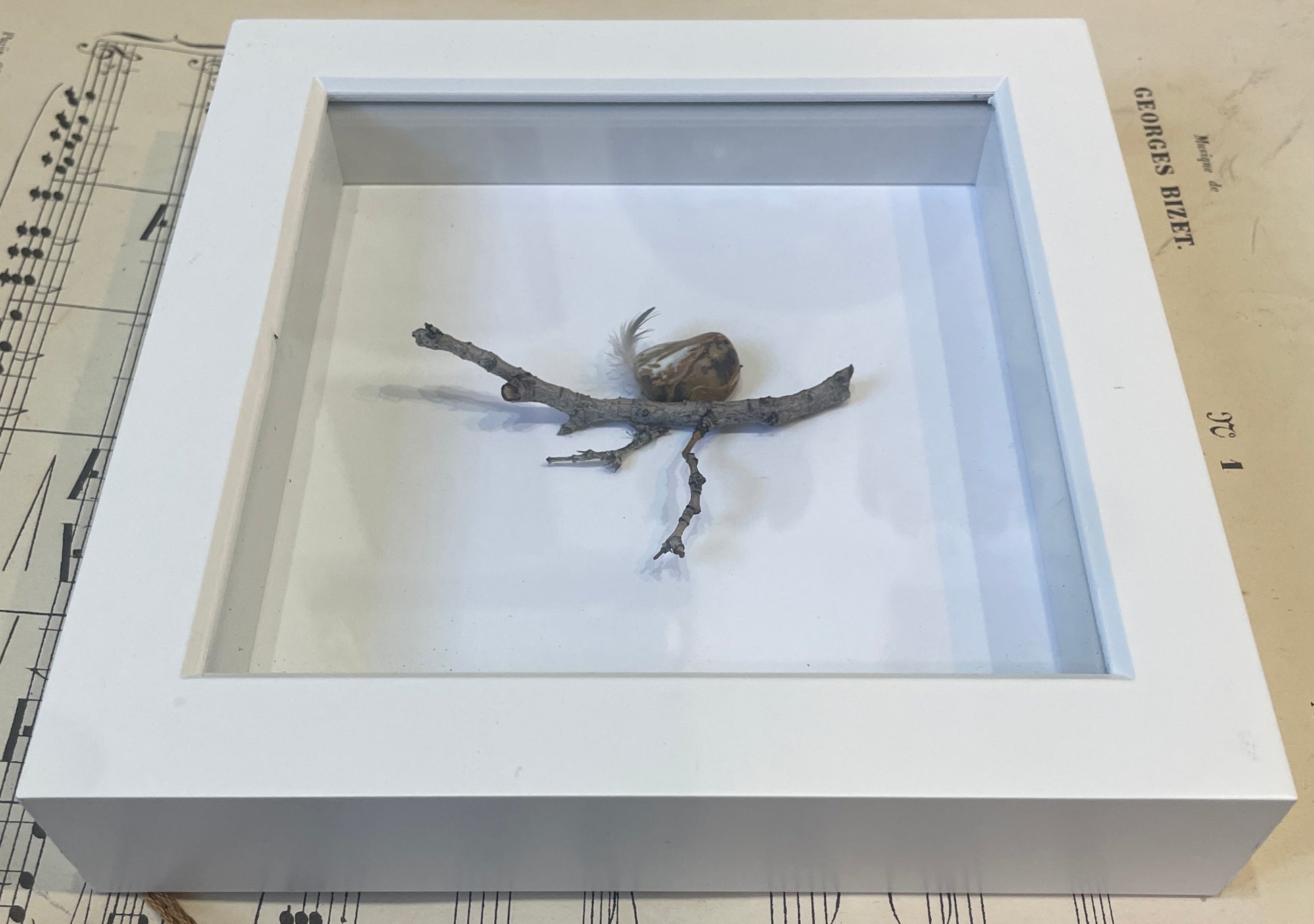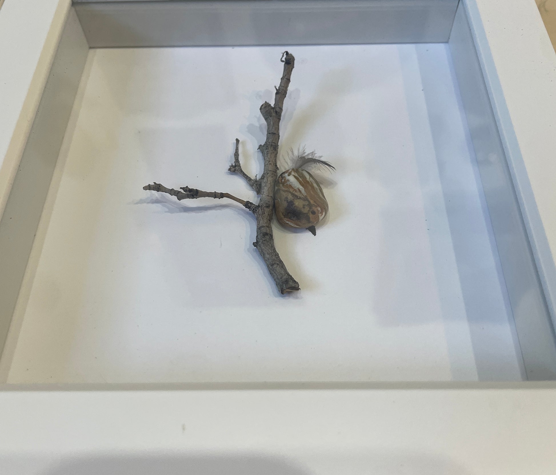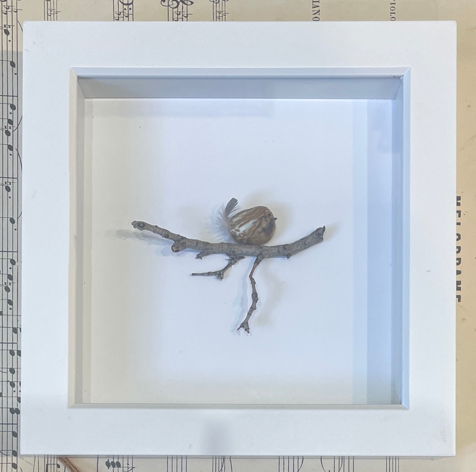 Carol Austin is a WA artist who has a knack for finding stones on her walks that demand to be transformed into one of her Rock Flock. She creates one of a kind shadowbox art using found natural elements to create small vignettes of birds and more. She also makes cards and ornaments.
